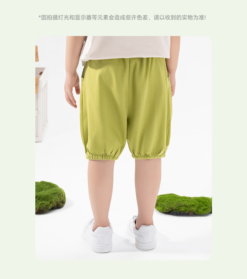여름 어린이 등불 바지 얇은 한국 인쇄 안경 개 녹색 반바지 소년 캐주얼 바지