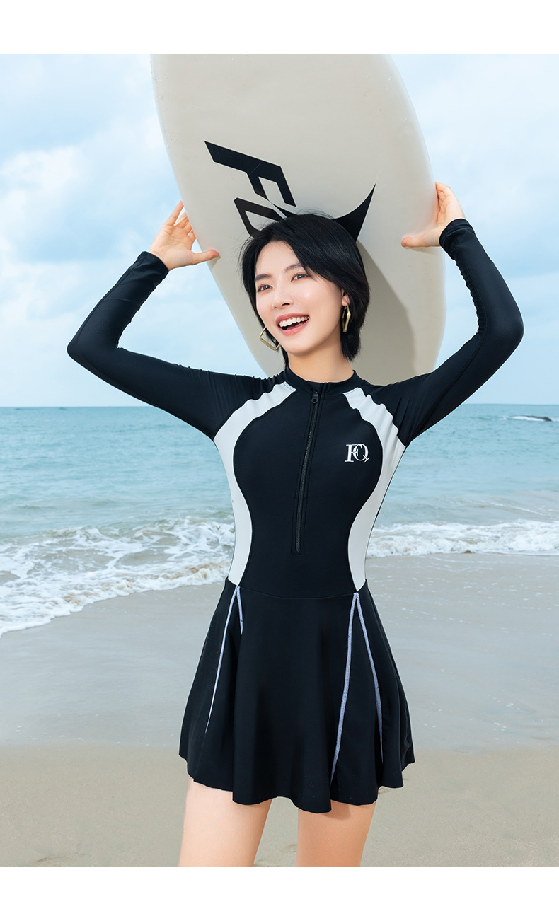2024 년 여름 새로운 수영복 여성 원피스 수영복 보수 고정 컵 긴 소매 태양 보호 수영 스커트 플러스 사이즈 잠수복