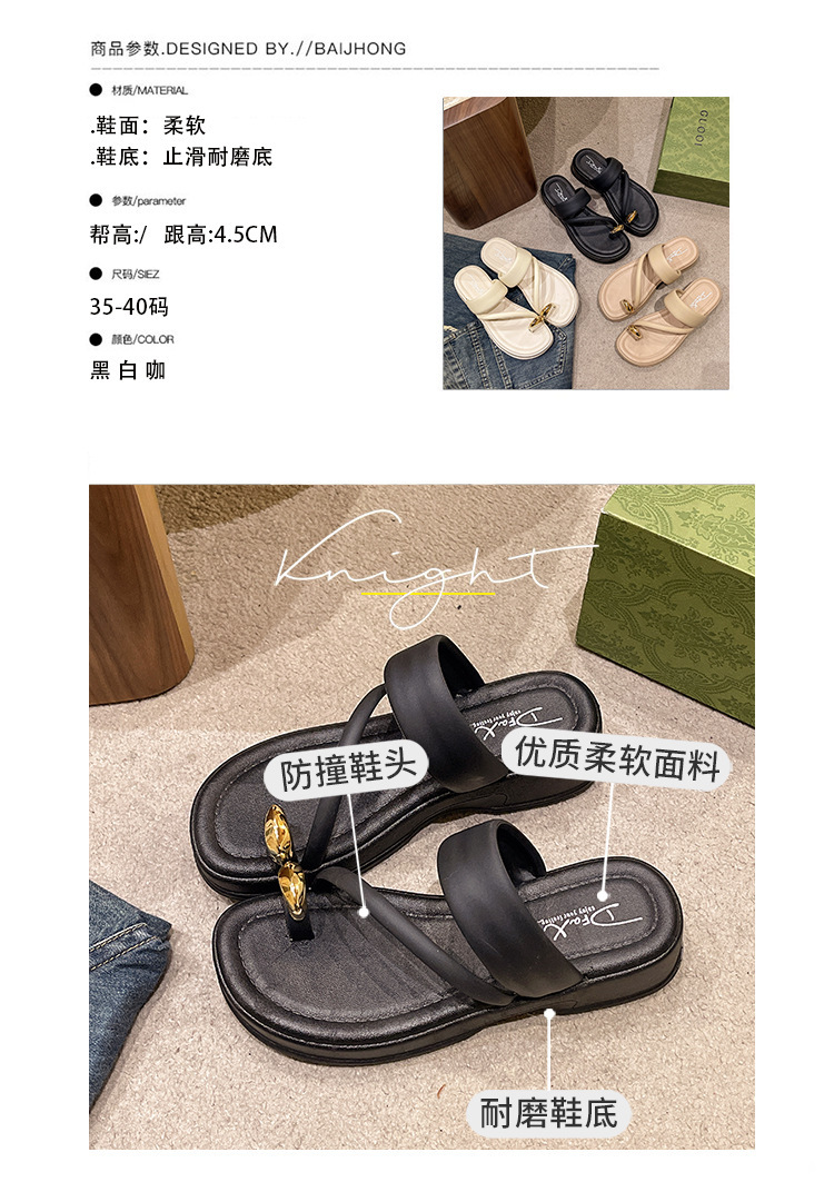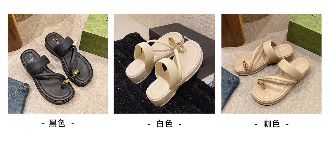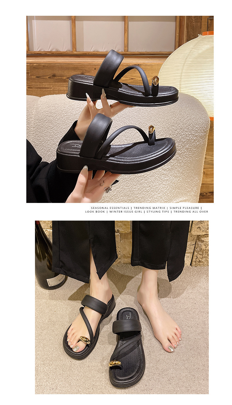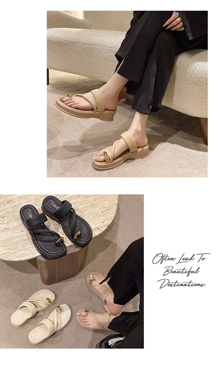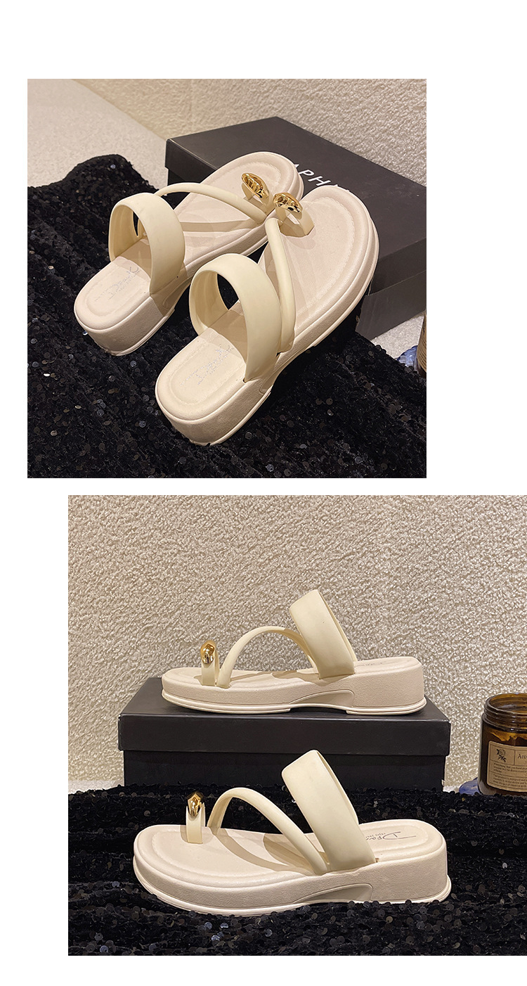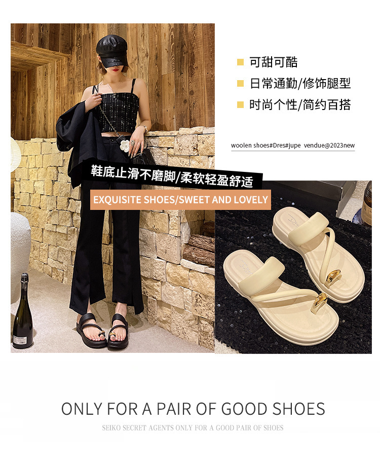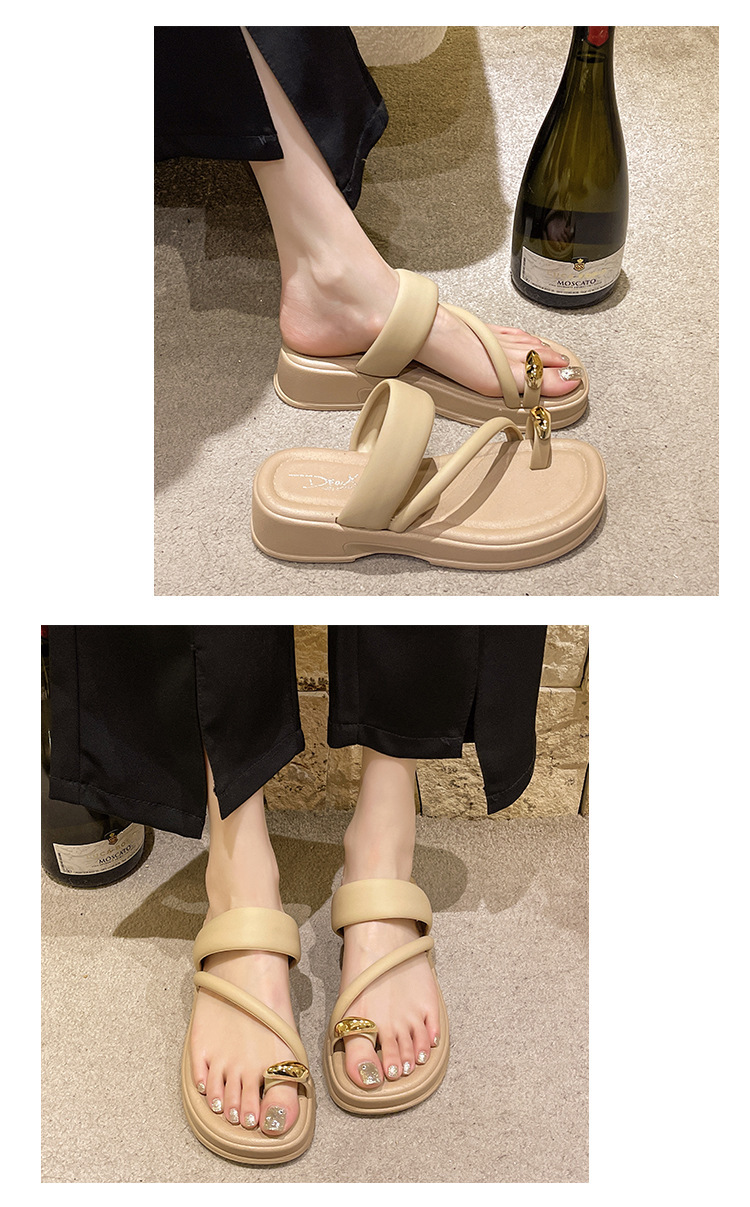 발가락 슬리퍼 여성의 여름 외부 착용 2024 새로운 패션 두꺼운 바닥 프랑스 스타일 캐주얼 클립 레그 비치 샌들 스커트스토어 가기