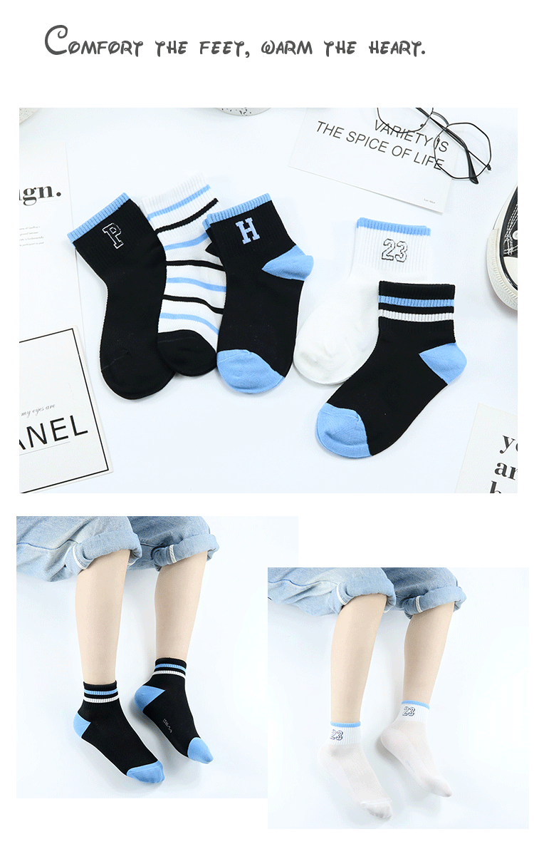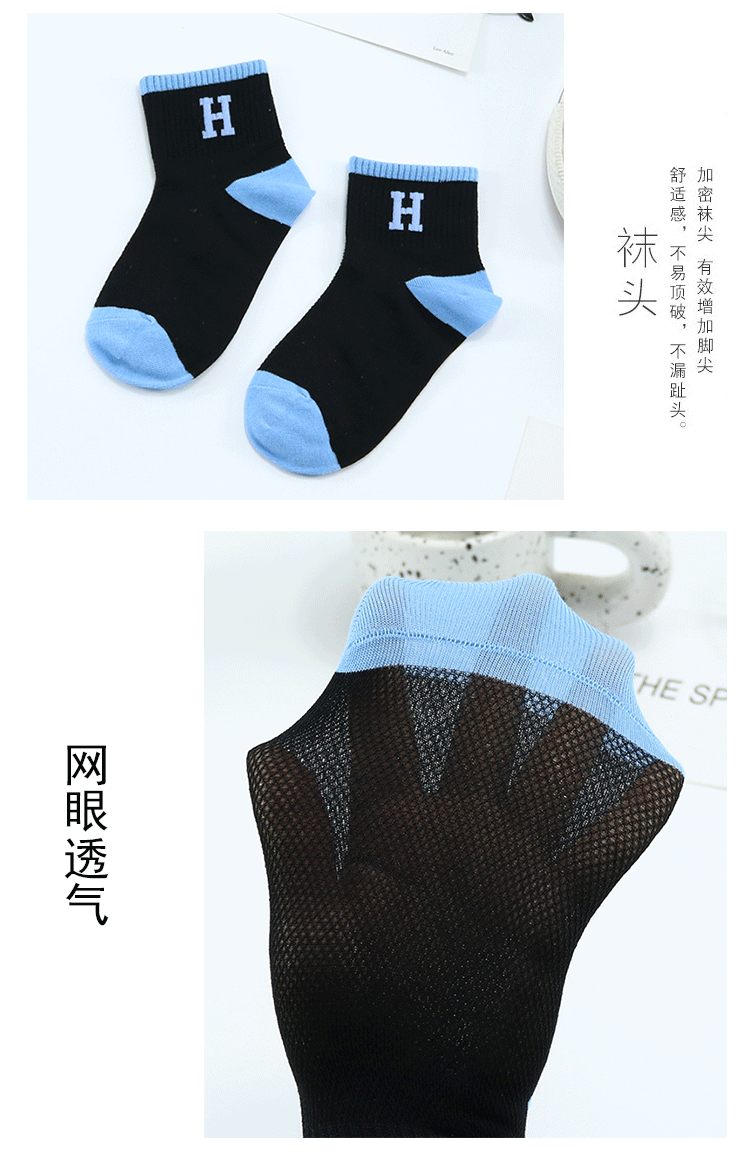Yi Shuang 쌍 어린이 양말 여름 새로운 메쉬 통기성 유행 브랜드 편지 짧은 양말 빗 코튼 소년 학생 양말