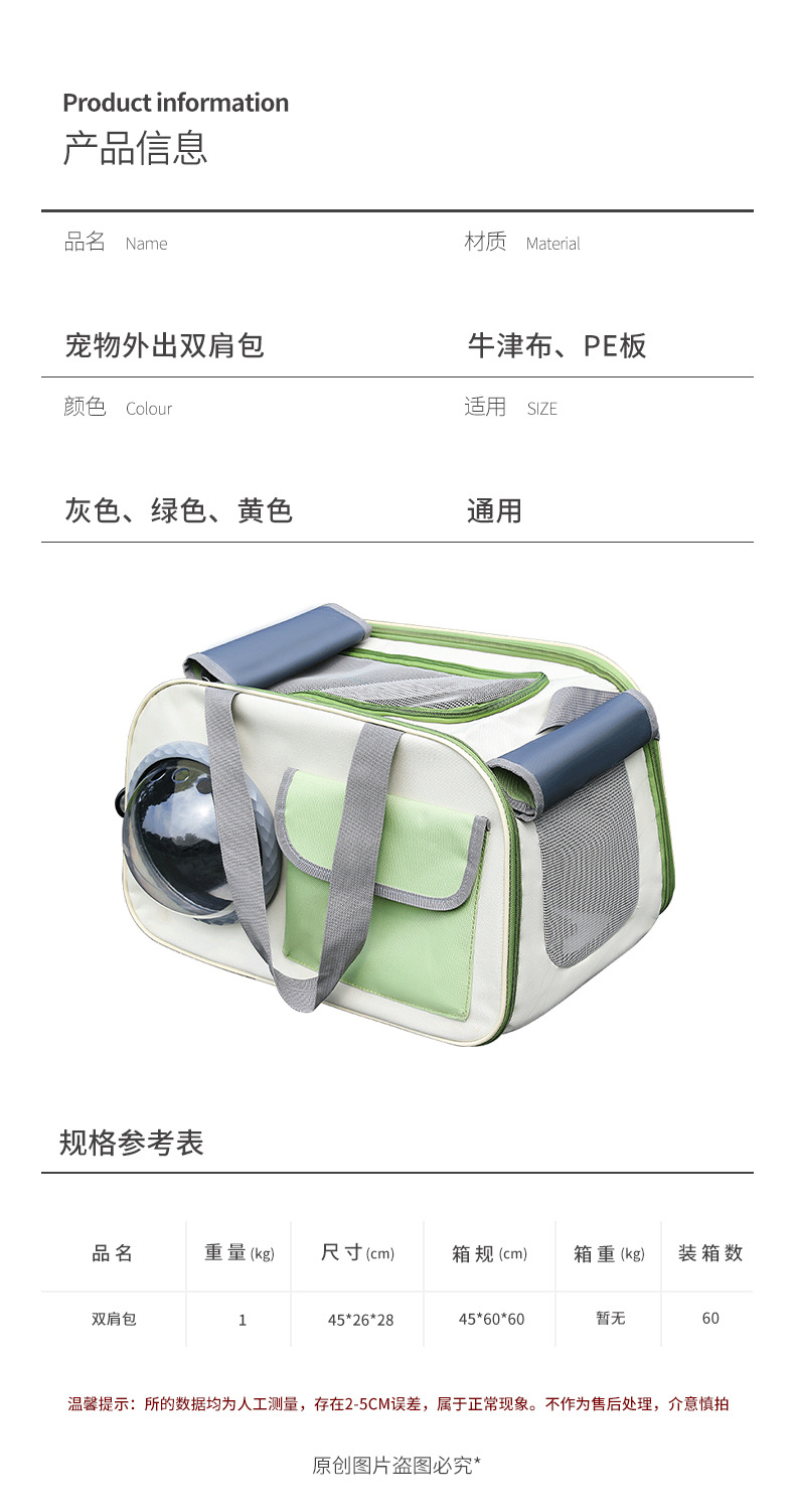 고양이 외출 통기성 휴대용 3 차원 공간 캡슐 고양이 가방 단일 어깨 교차하는 대용량 고양이 가방스토어 가기