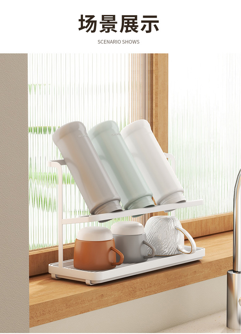 국경 간 일본식 철 배수 컵 홀더 가정용 주방 카운터 탑 더블 레이어 트레이 보온병 티 컵 커피 보관 랙