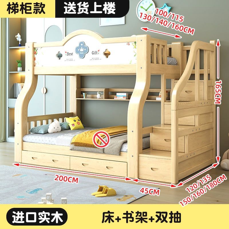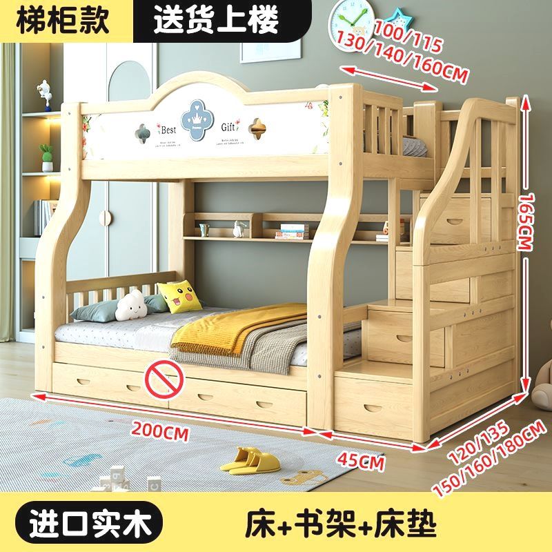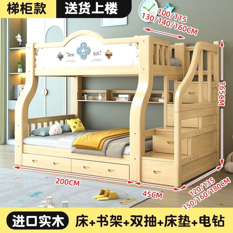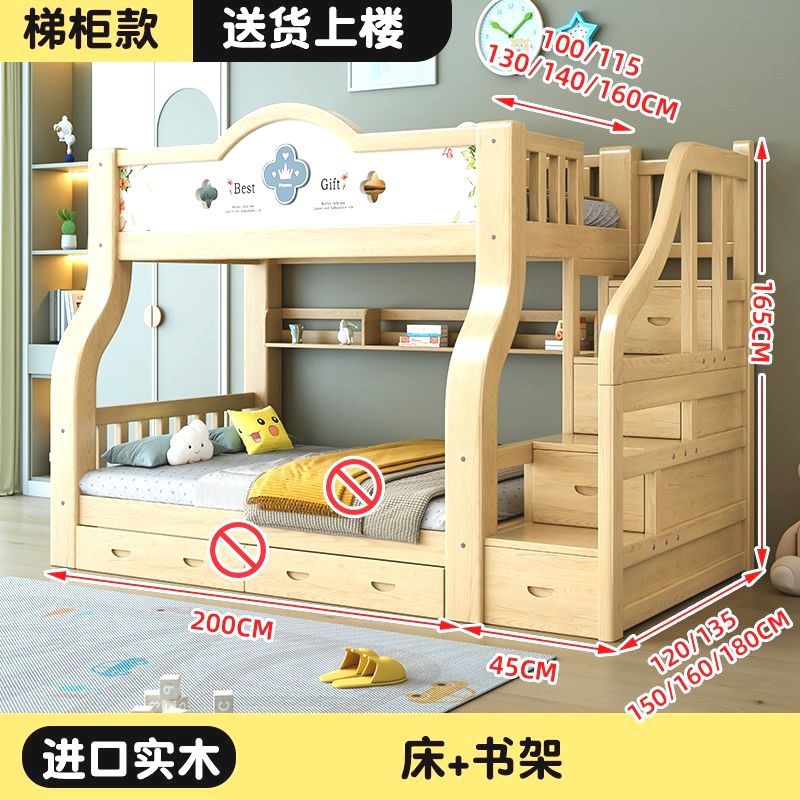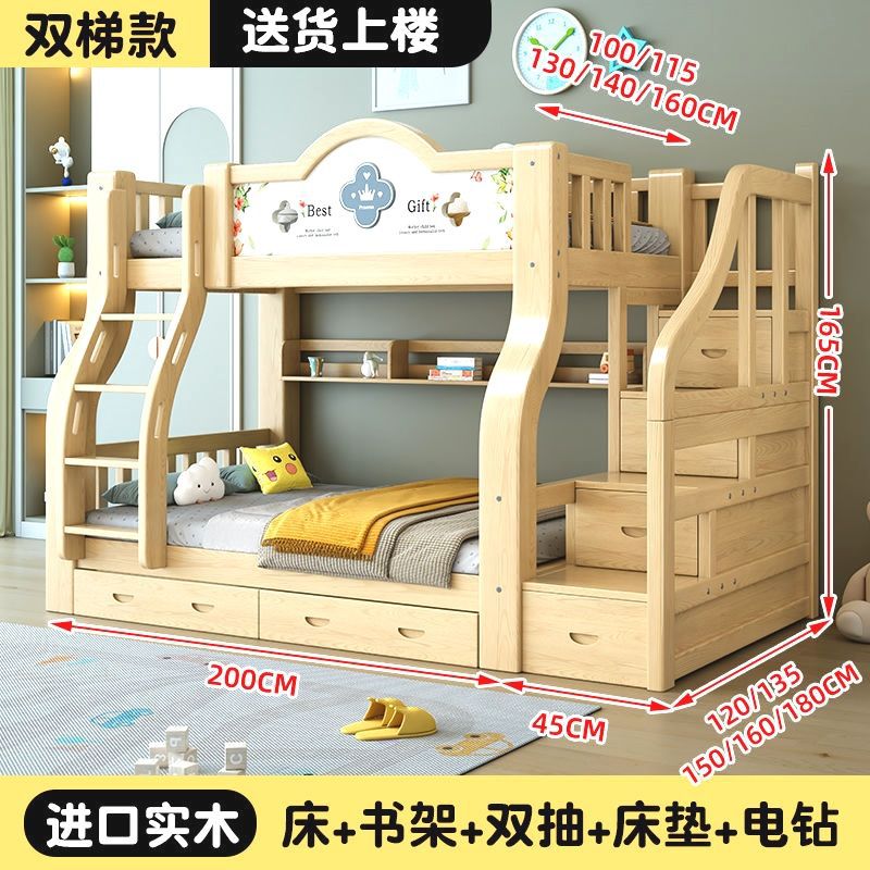 이층 침대 단단한 나무 어린이 침대 소년 소녀 작은 아파트 높고 낮은 침대 침대 침대 침대스토어 가기