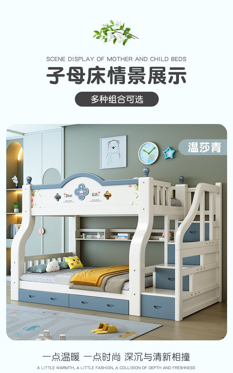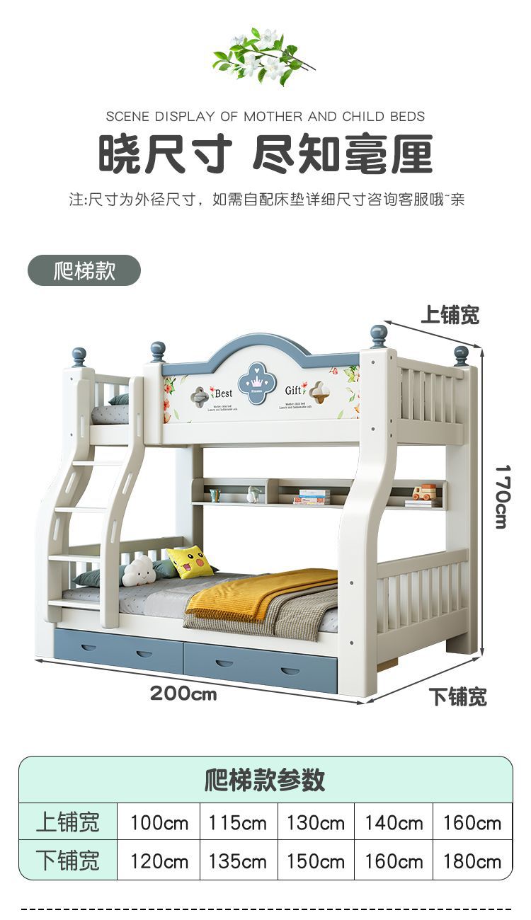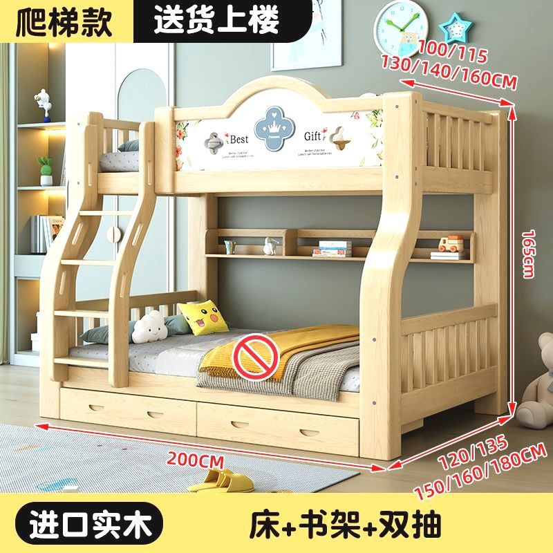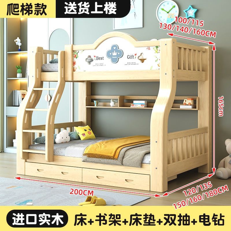 이층 침대 단단한 나무 어린이 침대 소년 소녀 작은 아파트 높고 낮은 침대 침대 침대 침대스토어 가기