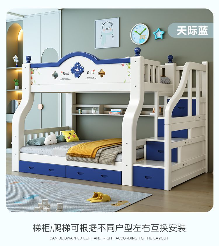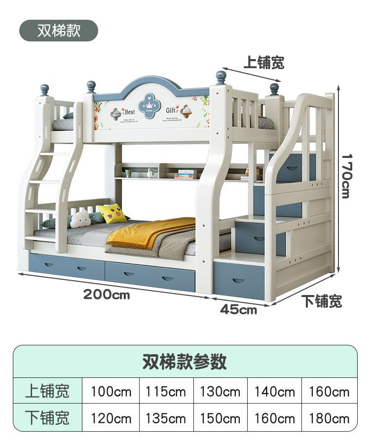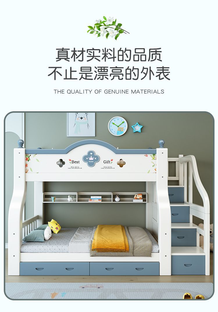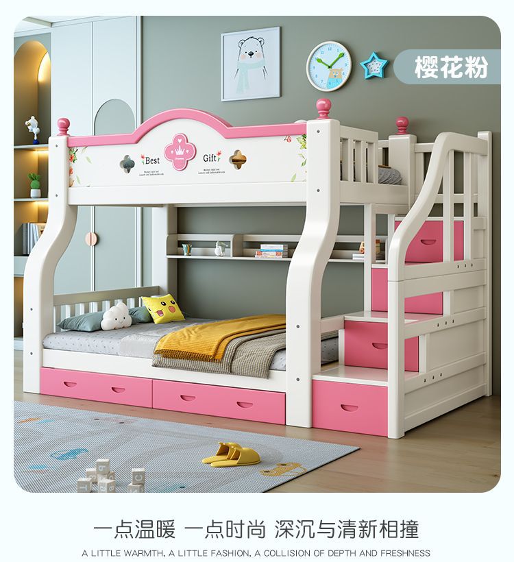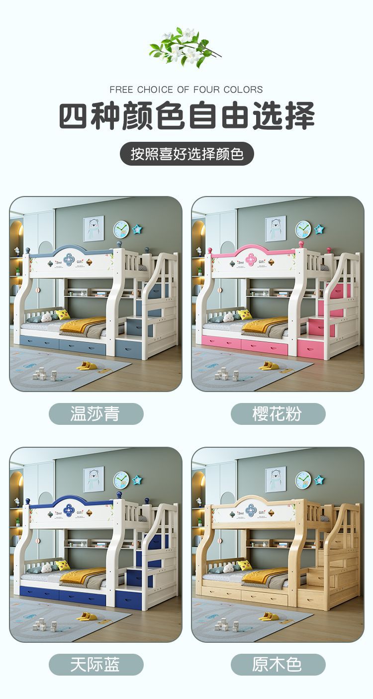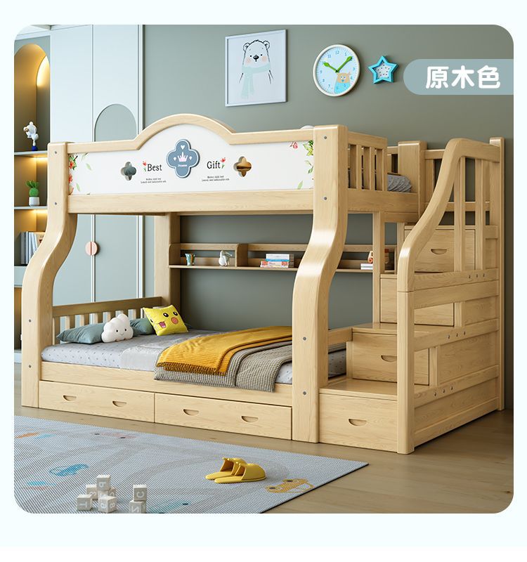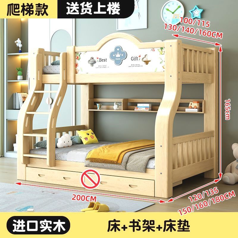 이층 침대 단단한 나무 어린이 침대 소년 소녀 작은 아파트 높고 낮은 침대 침대 침대 침대
