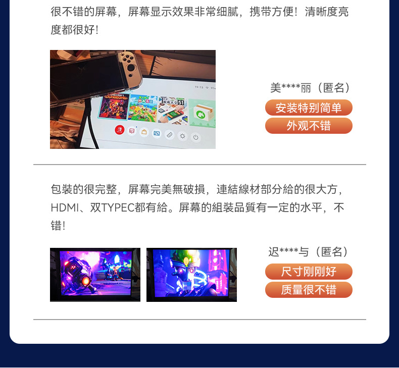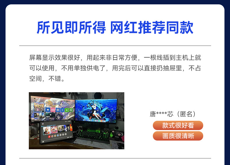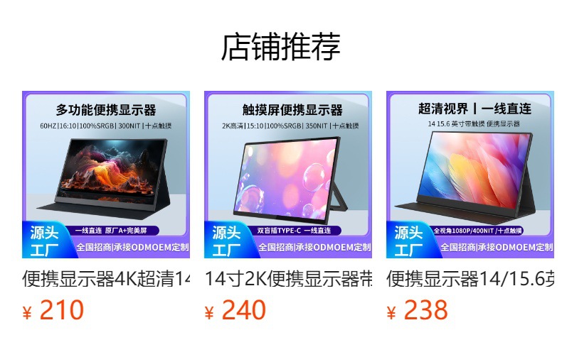 휴대용 디스플레이 4K 울트라 클리어 144HZ 터치 휴대용 화면 휴대 전화 전자 스포츠 스위치 외부 확장 하위 화면스토어 가기