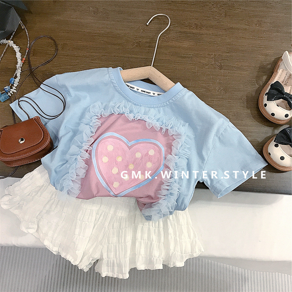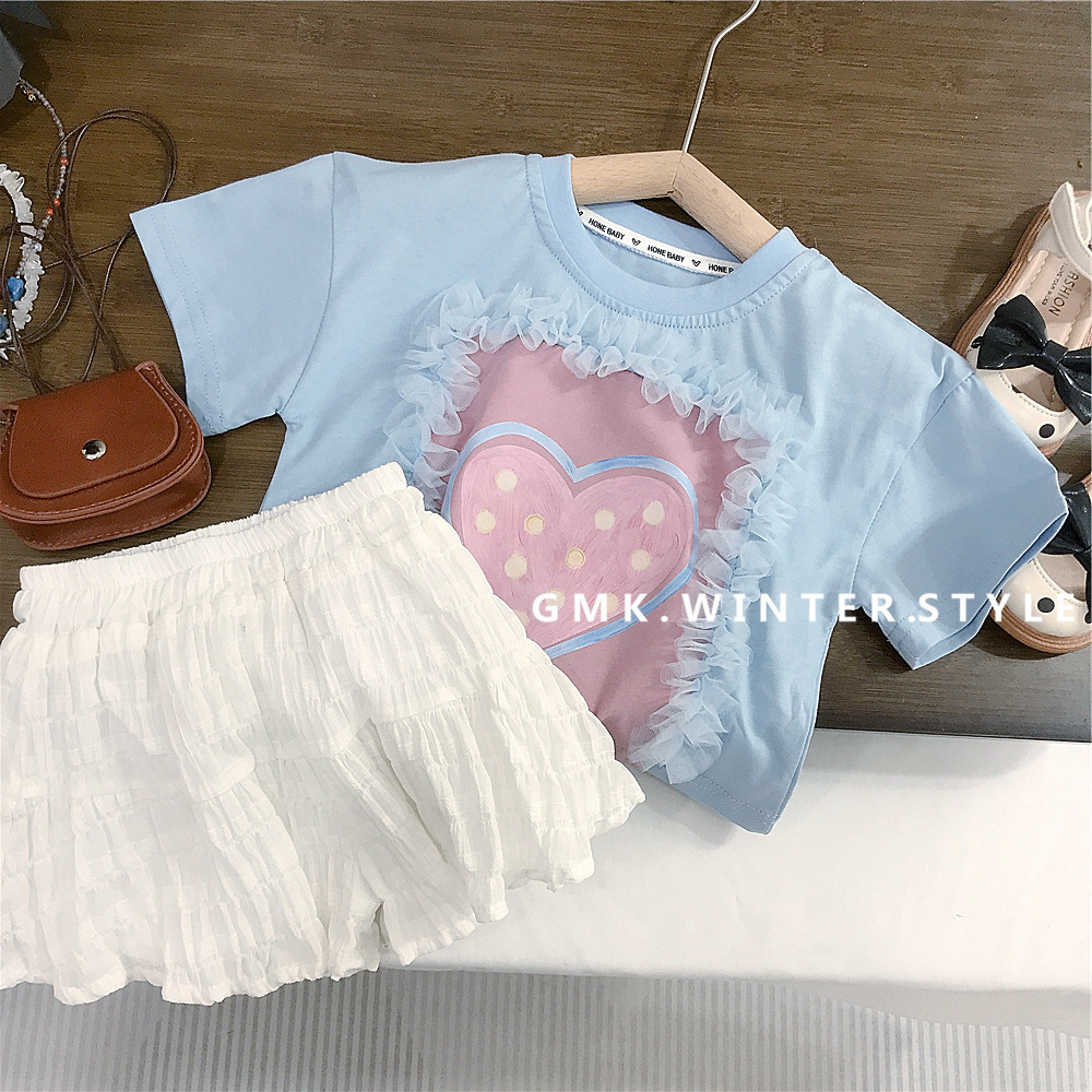 소녀의 여름 세트 새로운 스타일 유행 어린이 반바지 여름 대외 무역을위한 얇은 반팔 투피스 세트스토어 가기