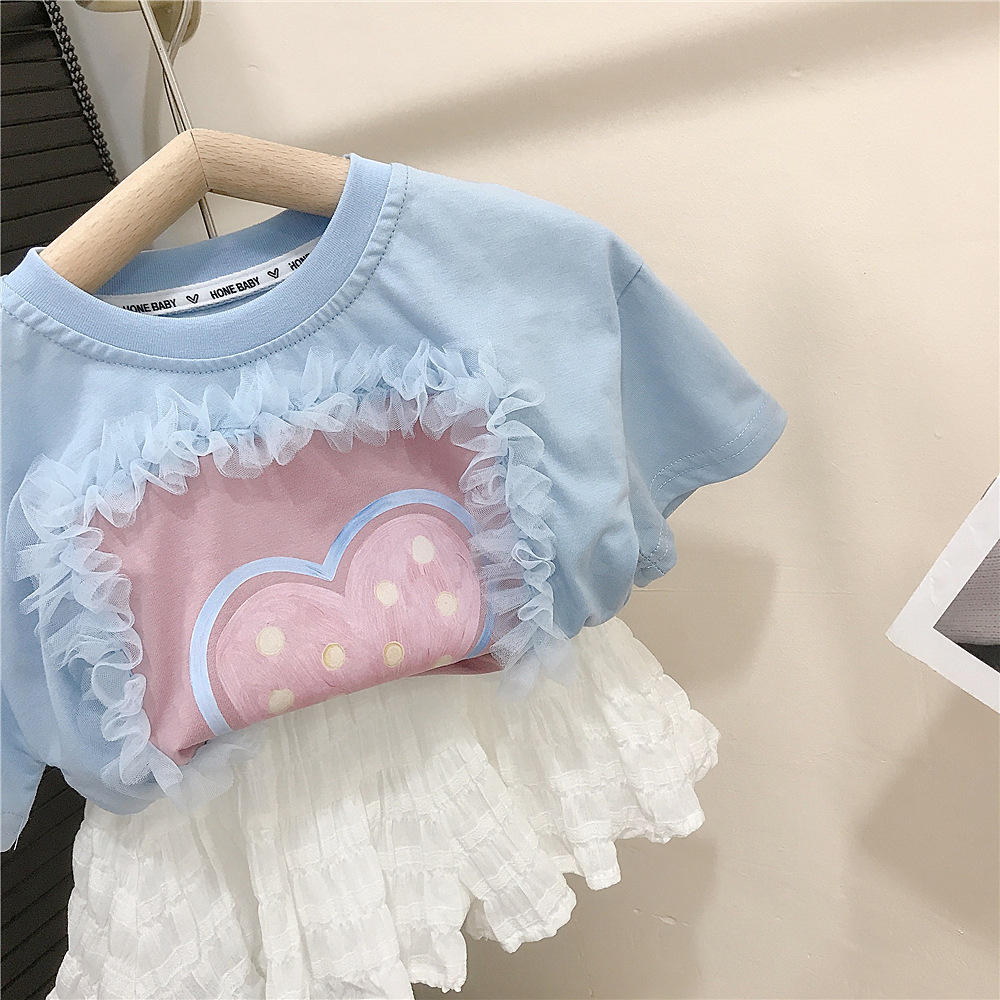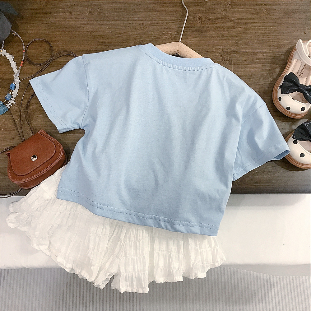 소녀의 여름 세트 새로운 스타일 유행 어린이 반바지 여름 대외 무역을위한 얇은 반팔 투피스 세트