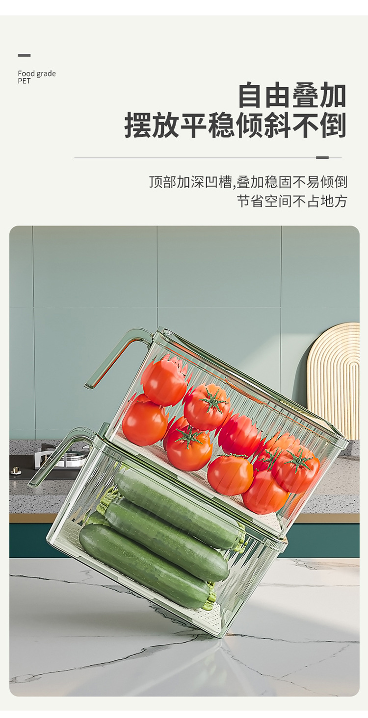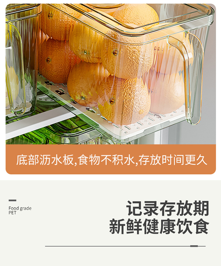 국경 투명 냉장고 저장 상자 주방 식품 등급 배수 야채 저장 상자 손잡이 플라스틱 보존 상자스토어 가기
