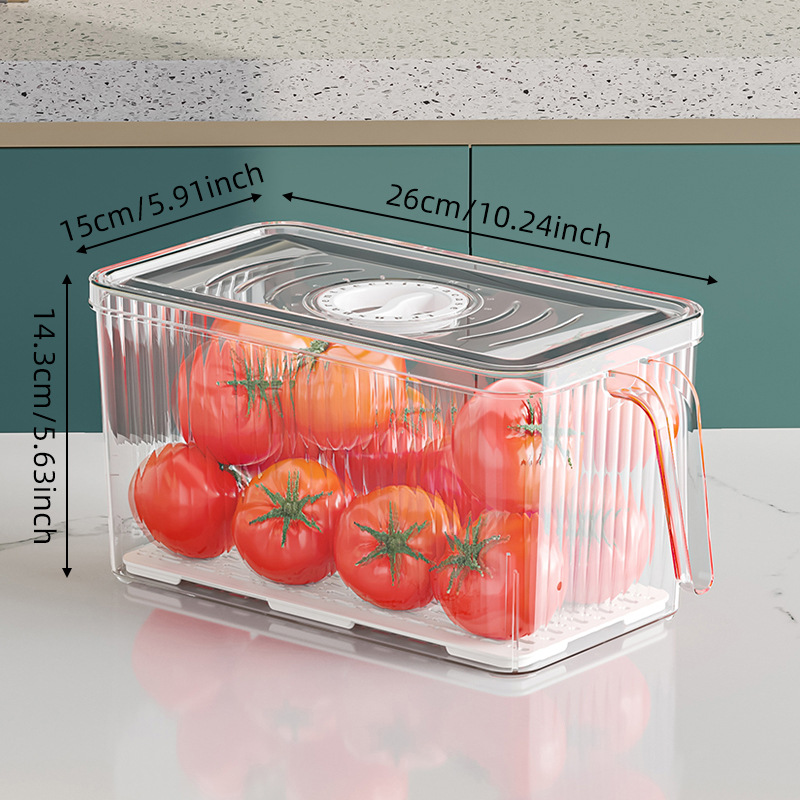 국경 투명 냉장고 저장 상자 주방 식품 등급 배수 야채 저장 상자 손잡이 플라스틱 보존 상자