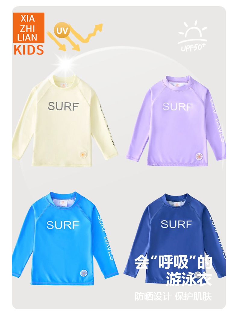 韩国韩范儿童泳衣男童女童单上衣长袖防晒冲浪服青少年沙滩泳衣潮