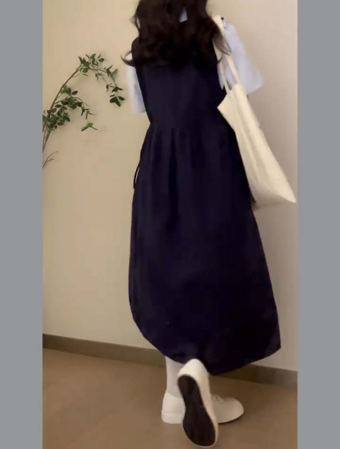 • [단일 조각] 네이비 스트랩 스커트
