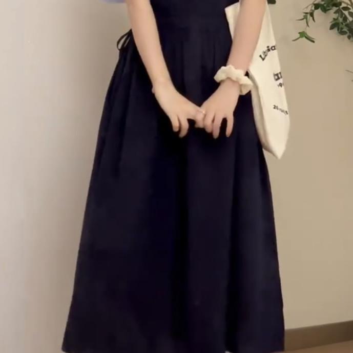 나이 감소 스트랩 원피스 여학생 타이트한 허리 슬림 A 라인 스커트 블루 셔츠 투피스 세트 일본 대학 스타일