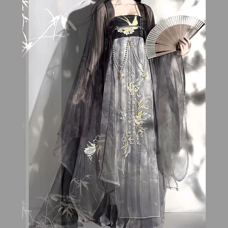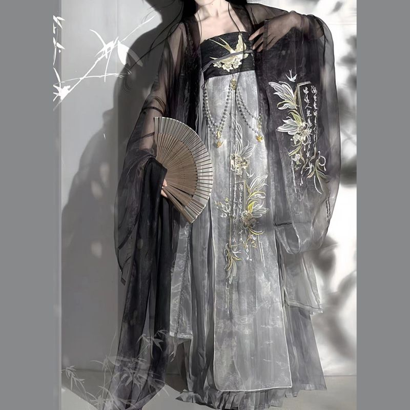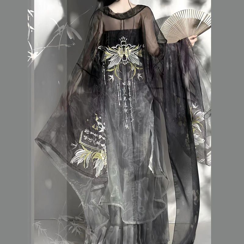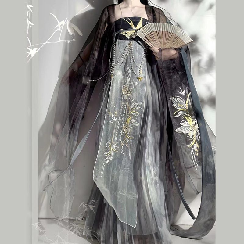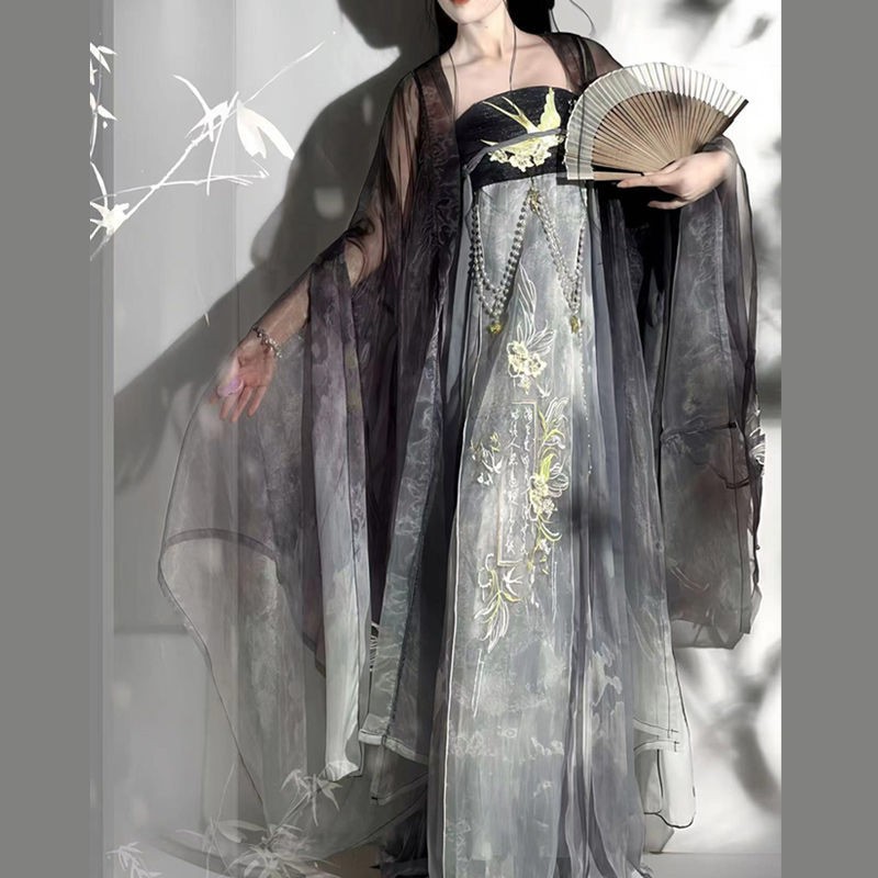 새로운 성인 한푸 짜기 얀 드림 시퀀스 당나라 만든 중공업 자수 Chebula 봄 여름 큰 소매 골동품 슈퍼 요정 여름 가슴