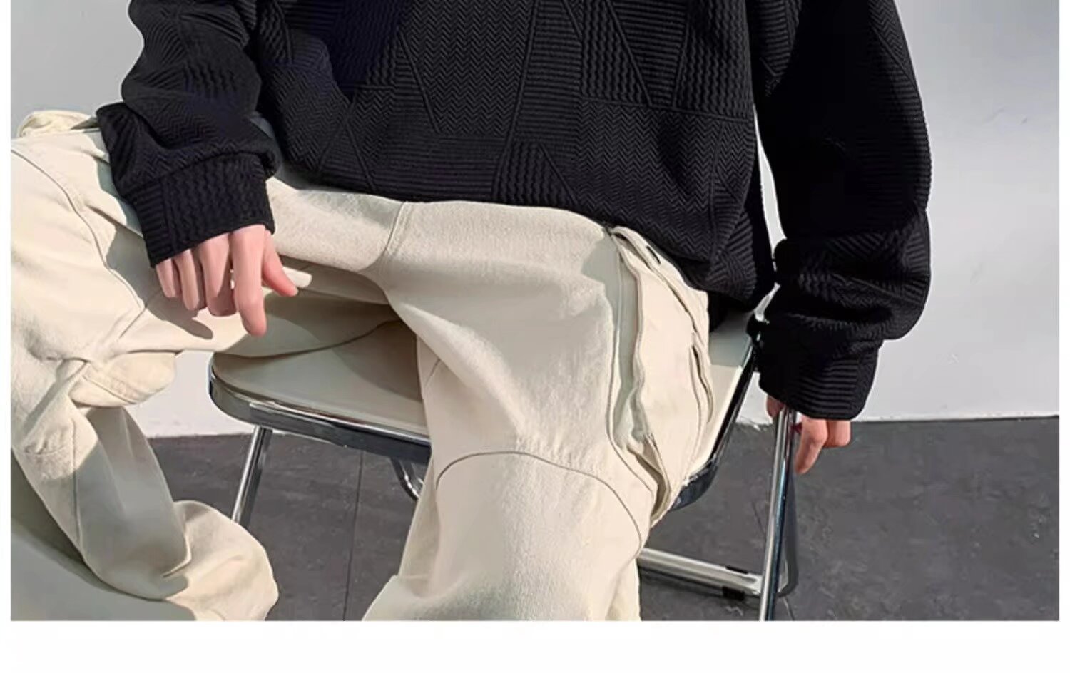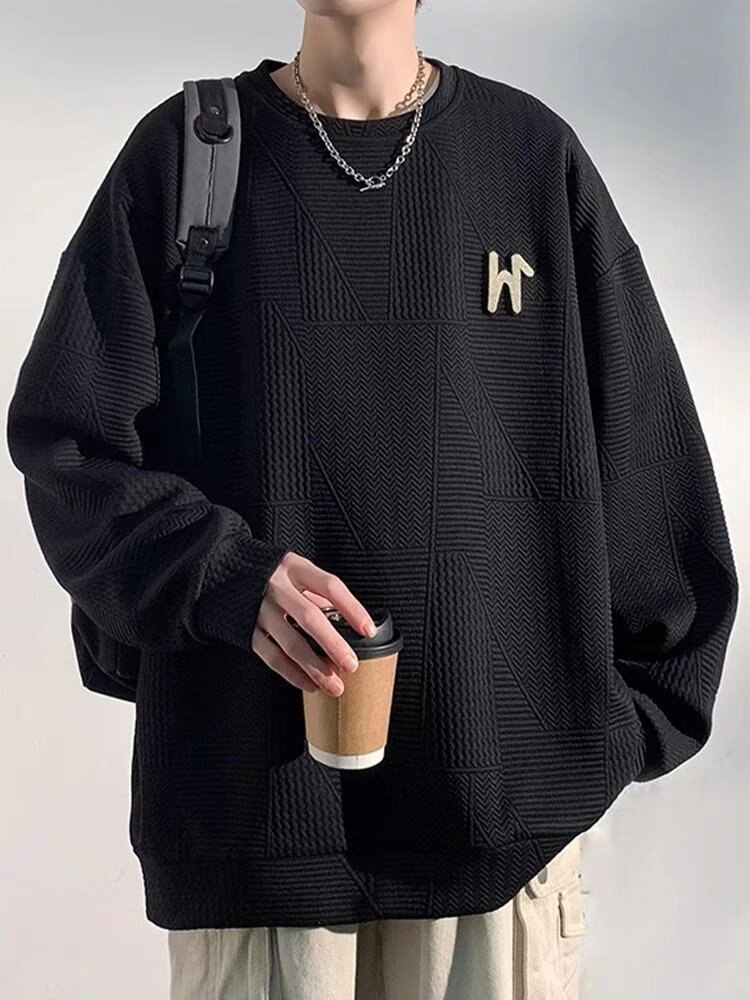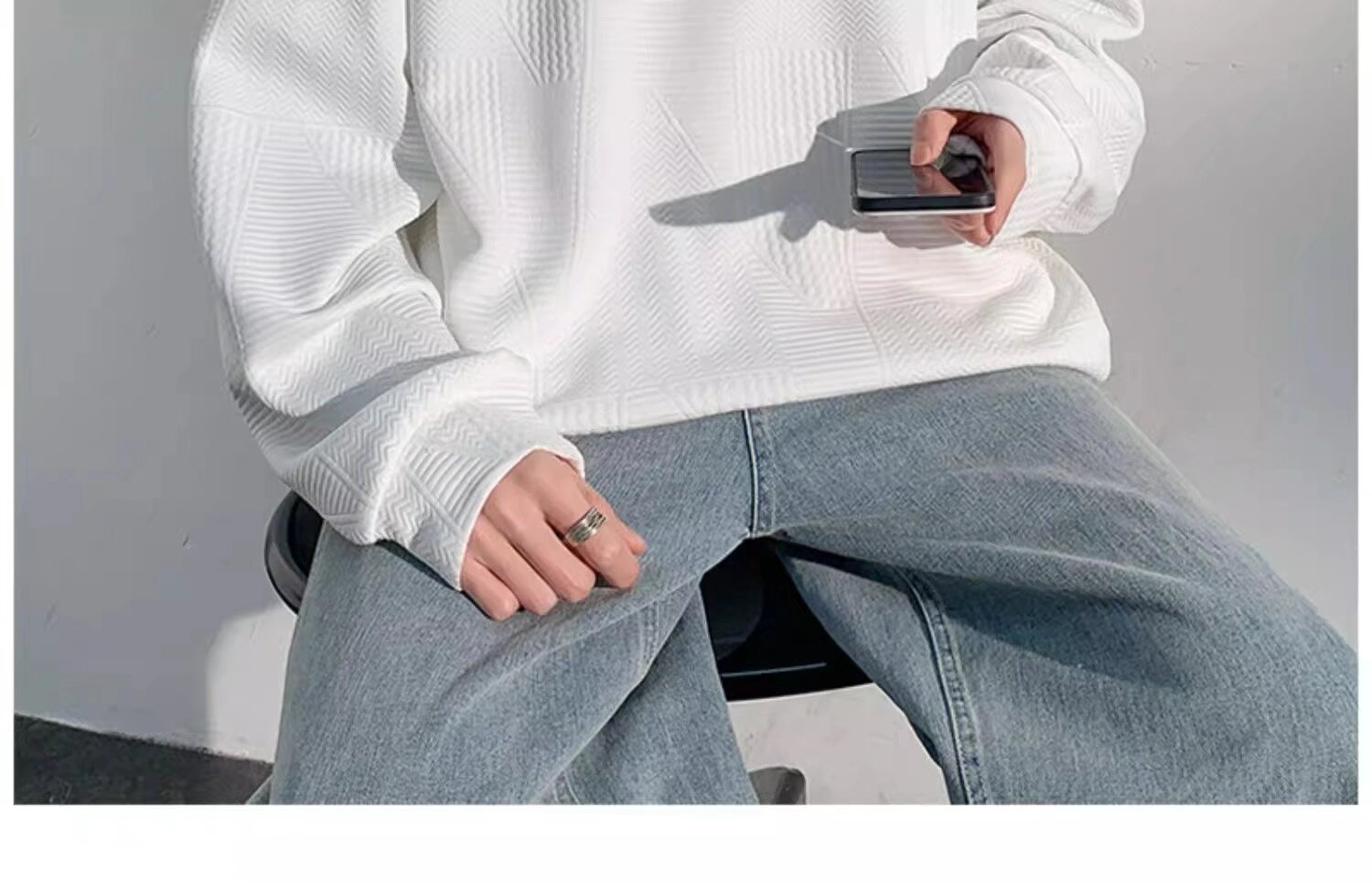 무거운 긴팔 티셔츠 남자 2023 년 봄과 가을 새로운 유행 느슨한 국가 스타일 중산 스웨터베이스 셔츠 탑