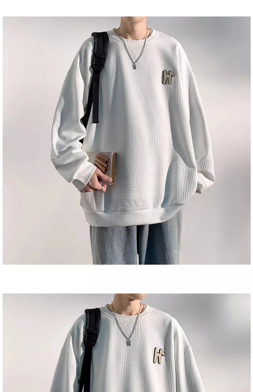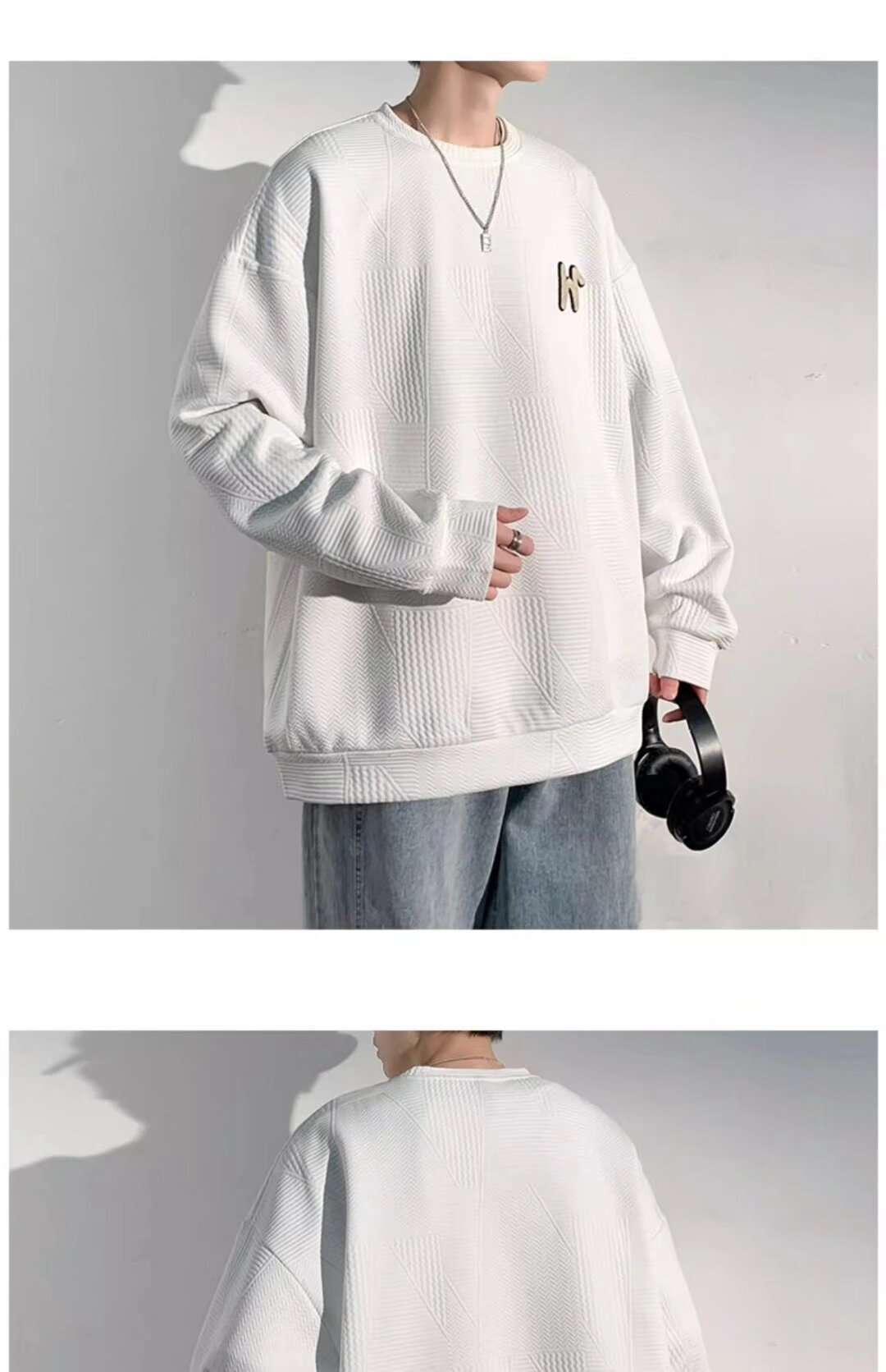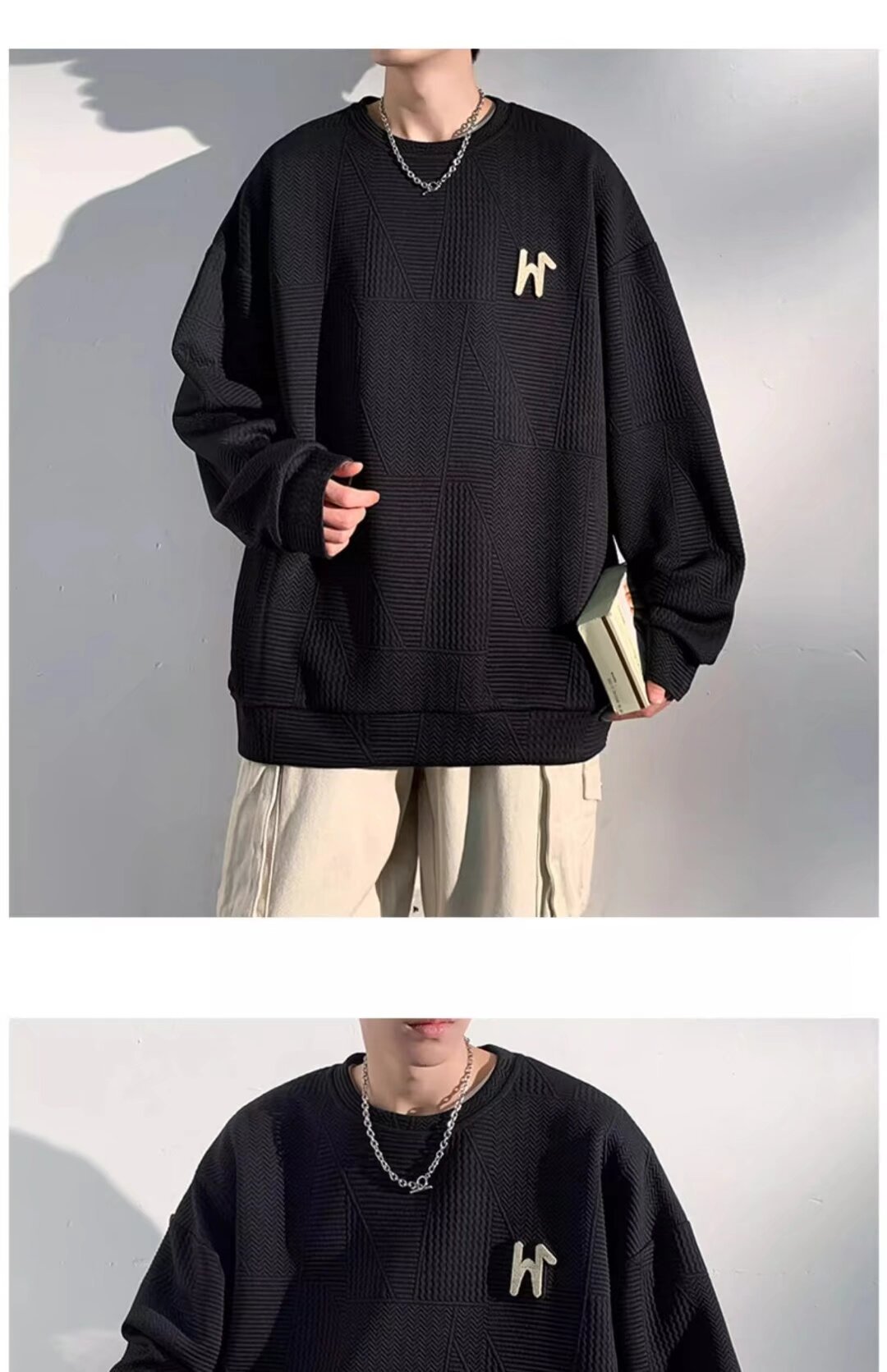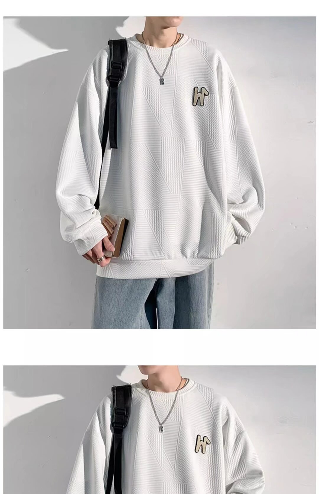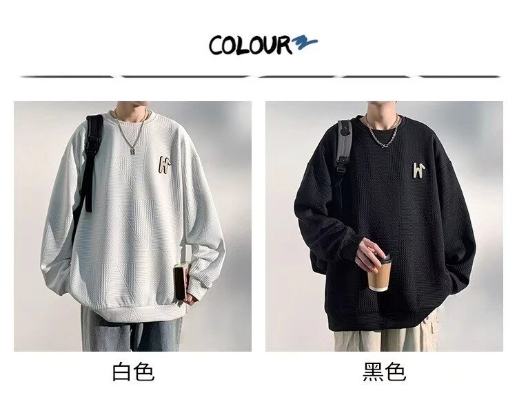 무거운 긴팔 티셔츠 남자 2023 년 봄과 가을 새로운 유행 느슨한 국가 스타일 중산 스웨터베이스 셔츠 탑스토어 가기