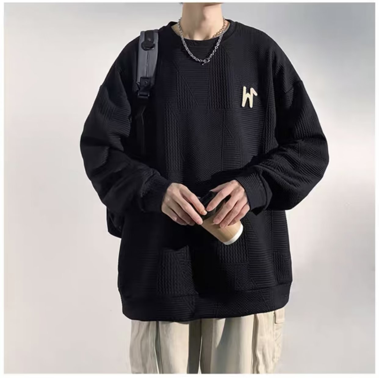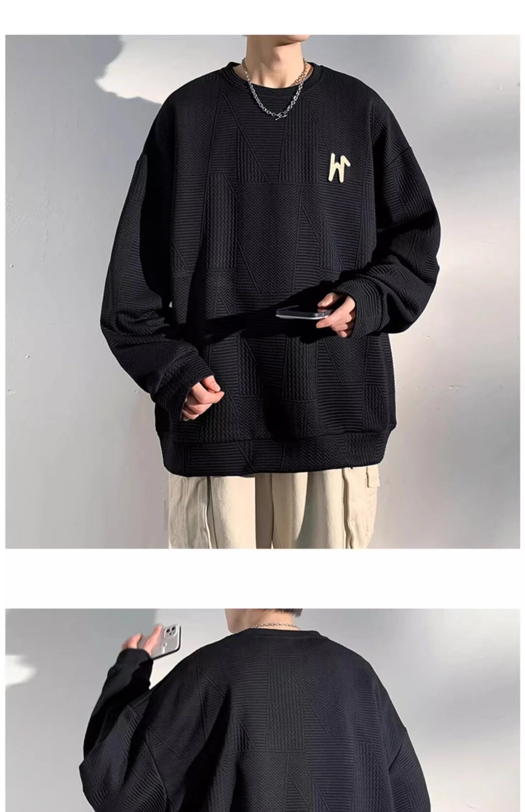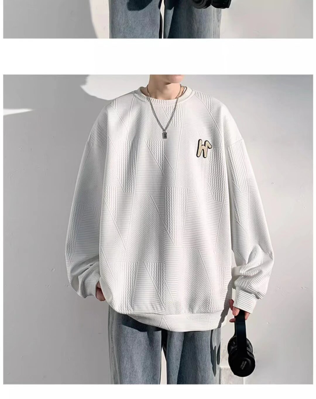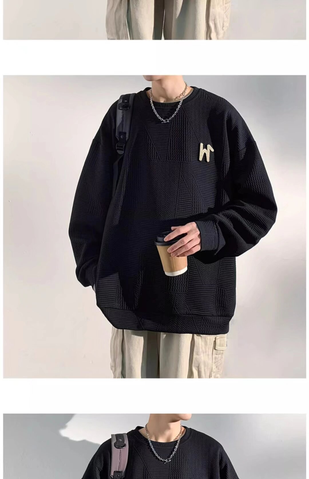 무거운 긴팔 티셔츠 남자 2023 년 봄과 가을 새로운 유행 느슨한 국가 스타일 중산 스웨터베이스 셔츠 탑스토어 가기