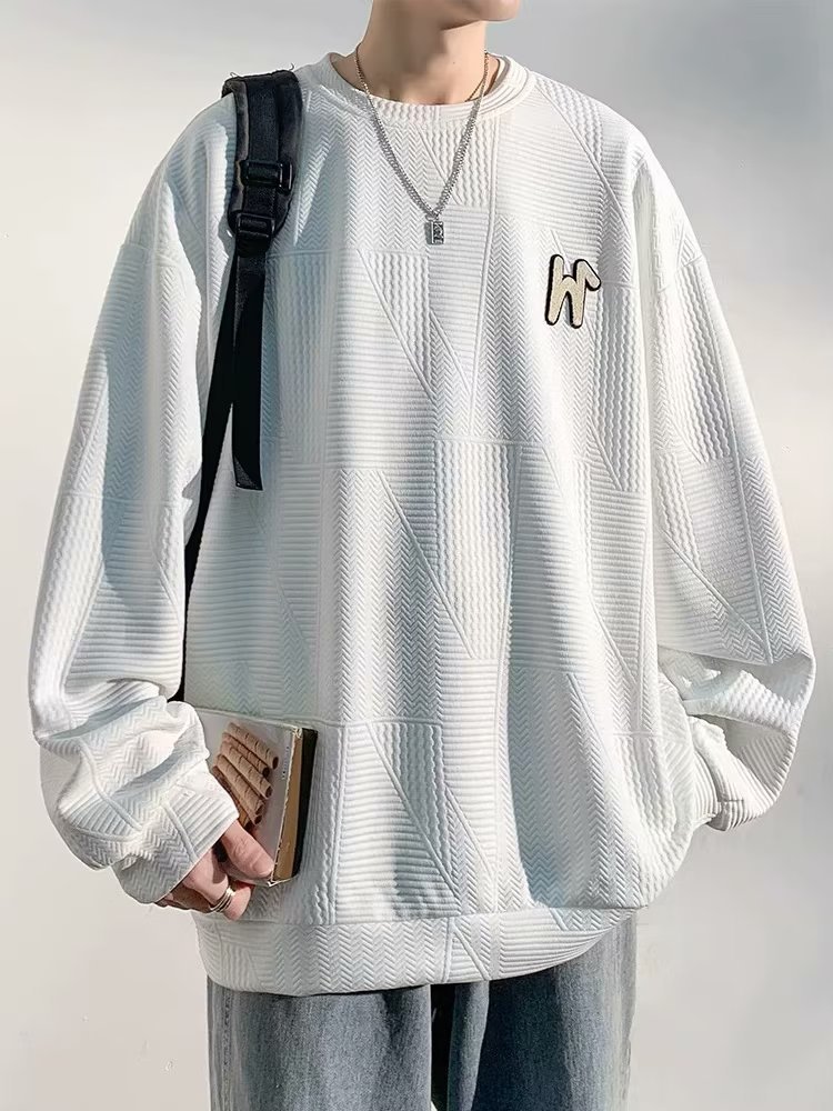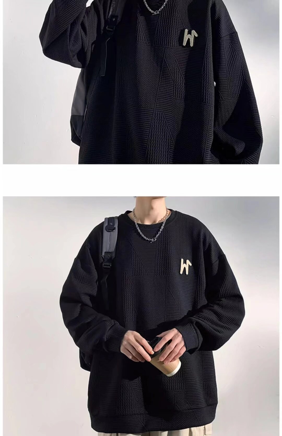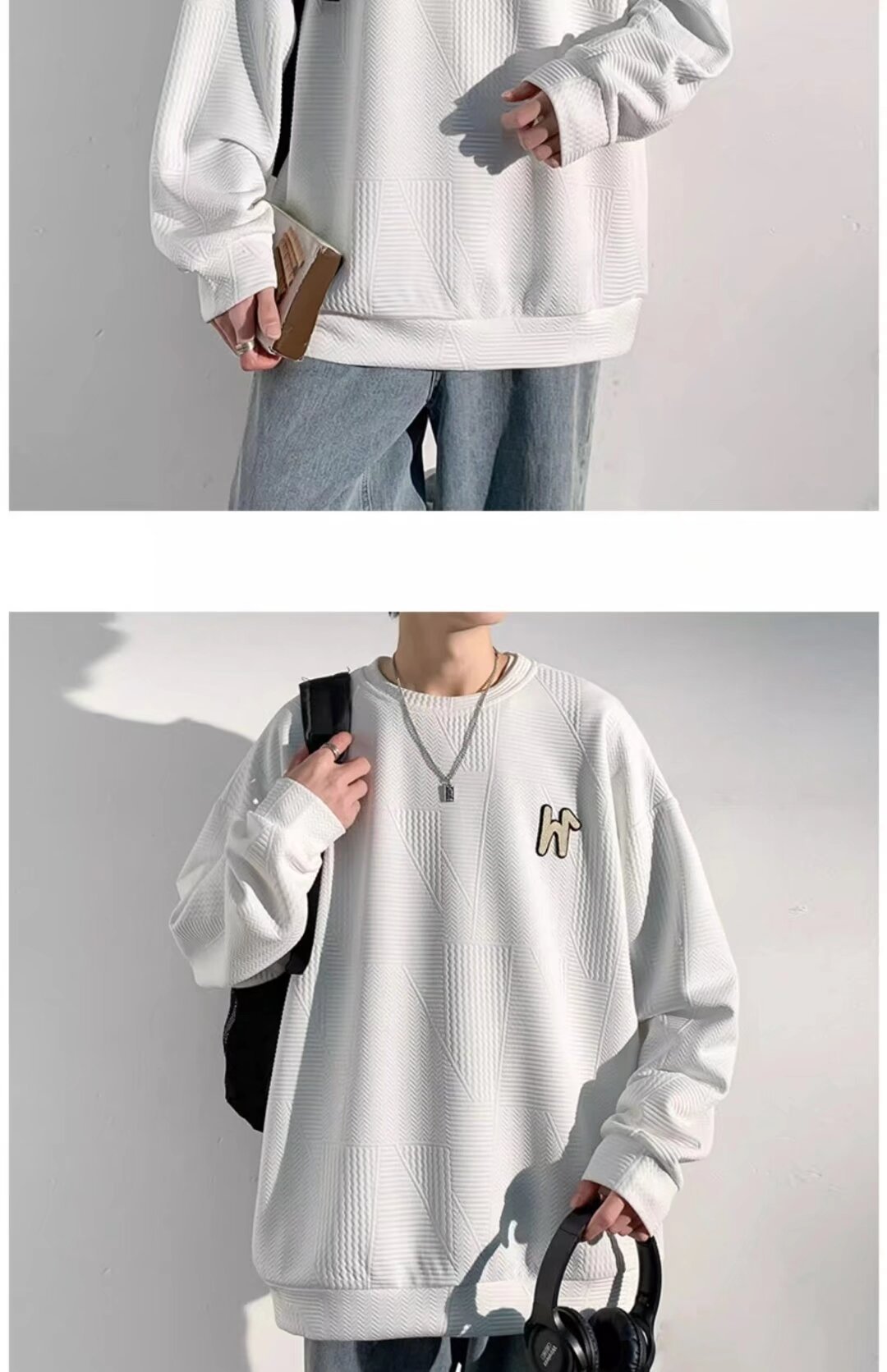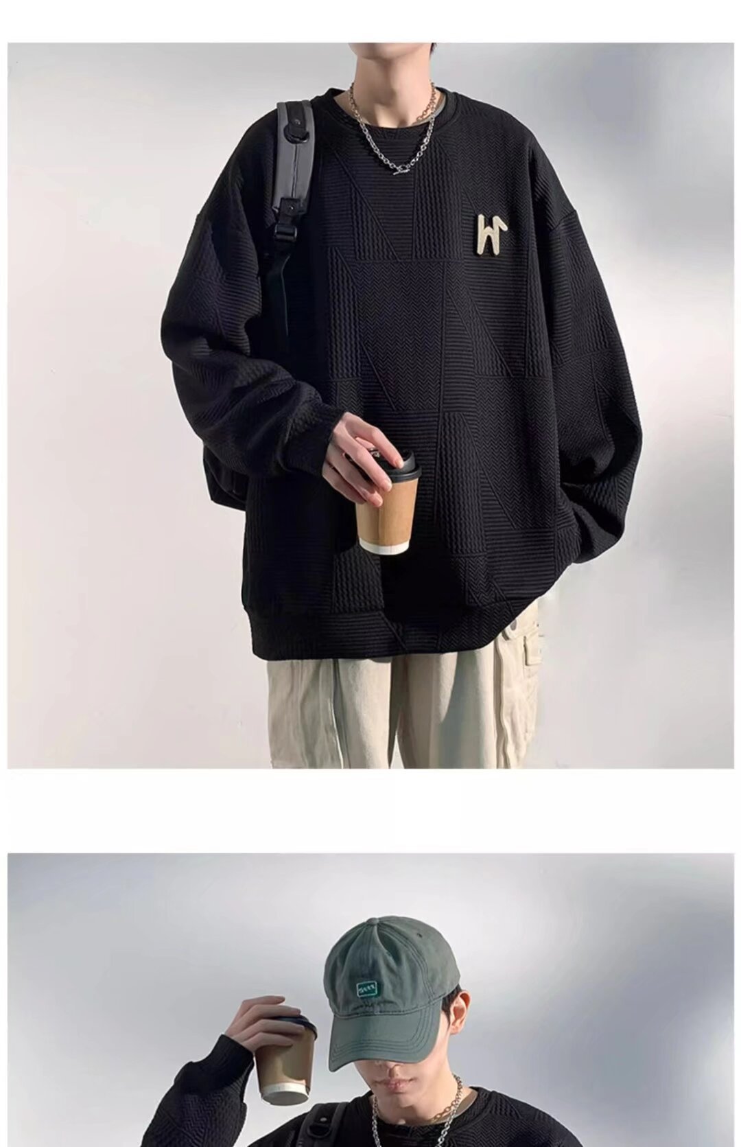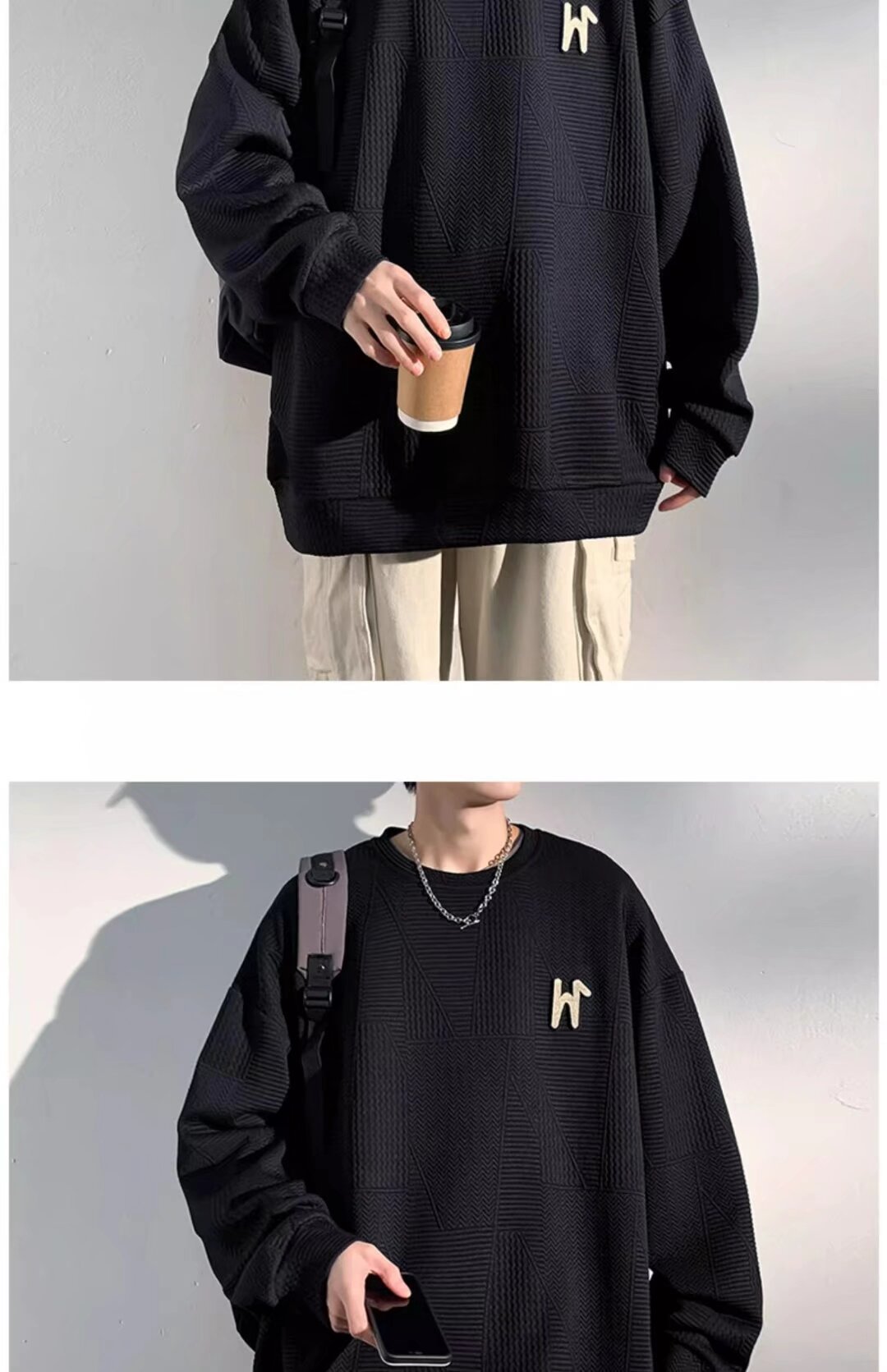 무거운 긴팔 티셔츠 남자 2023 년 봄과 가을 새로운 유행 느슨한 국가 스타일 중산 스웨터베이스 셔츠 탑스토어 가기