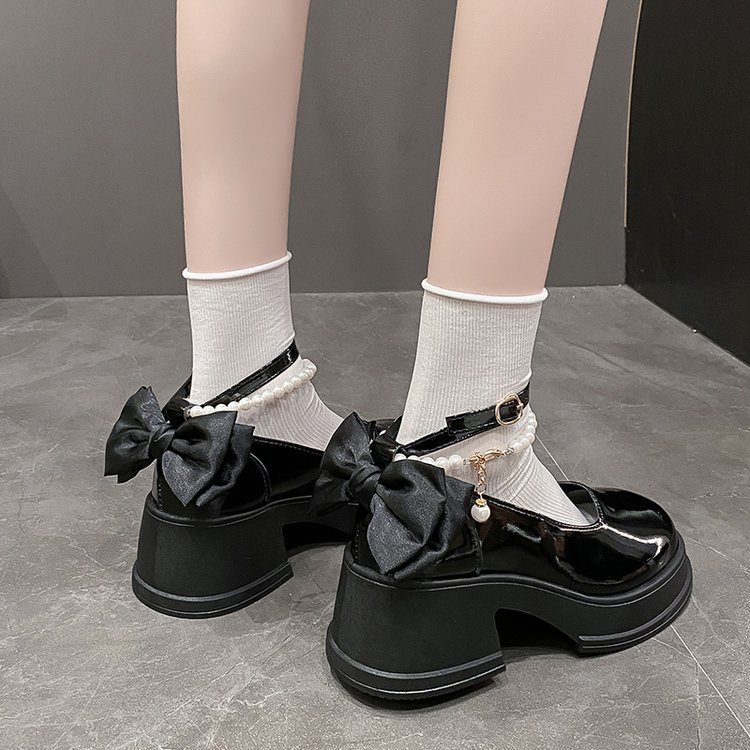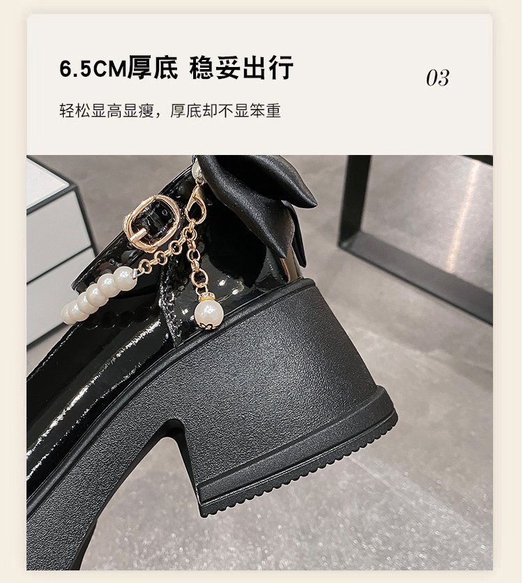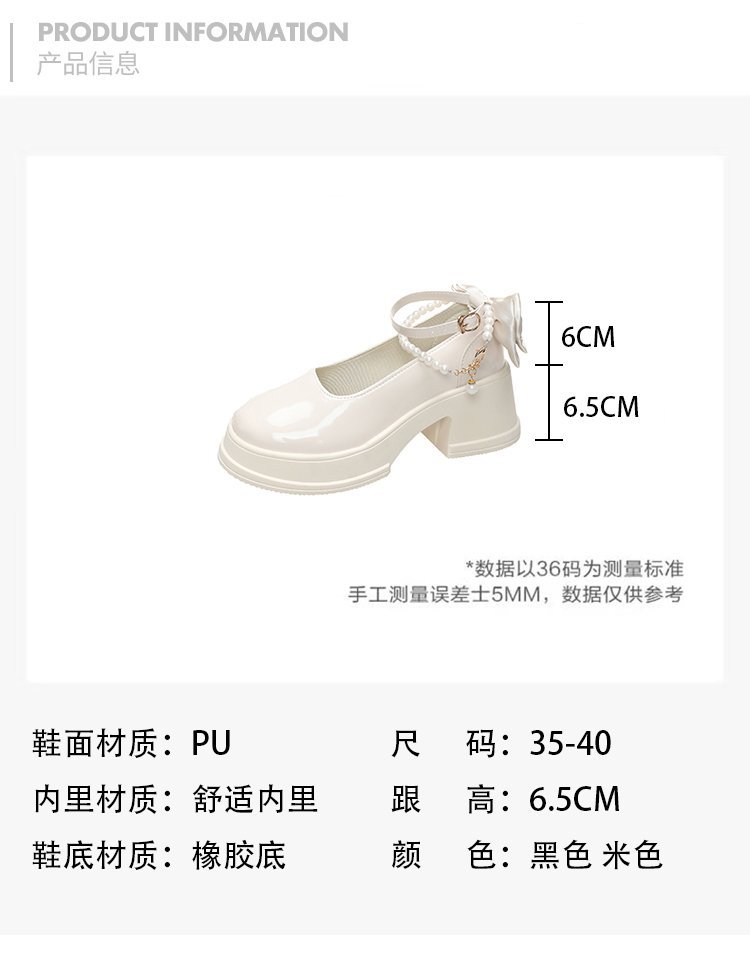 프랑스 스타일 메리 제인 작은 가죽 신발 여성의 2024 여름 새로운 요정 스타일 원피스 두꺼운 바닥 증가 두꺼운 굽 구슬 신발스토어 가기