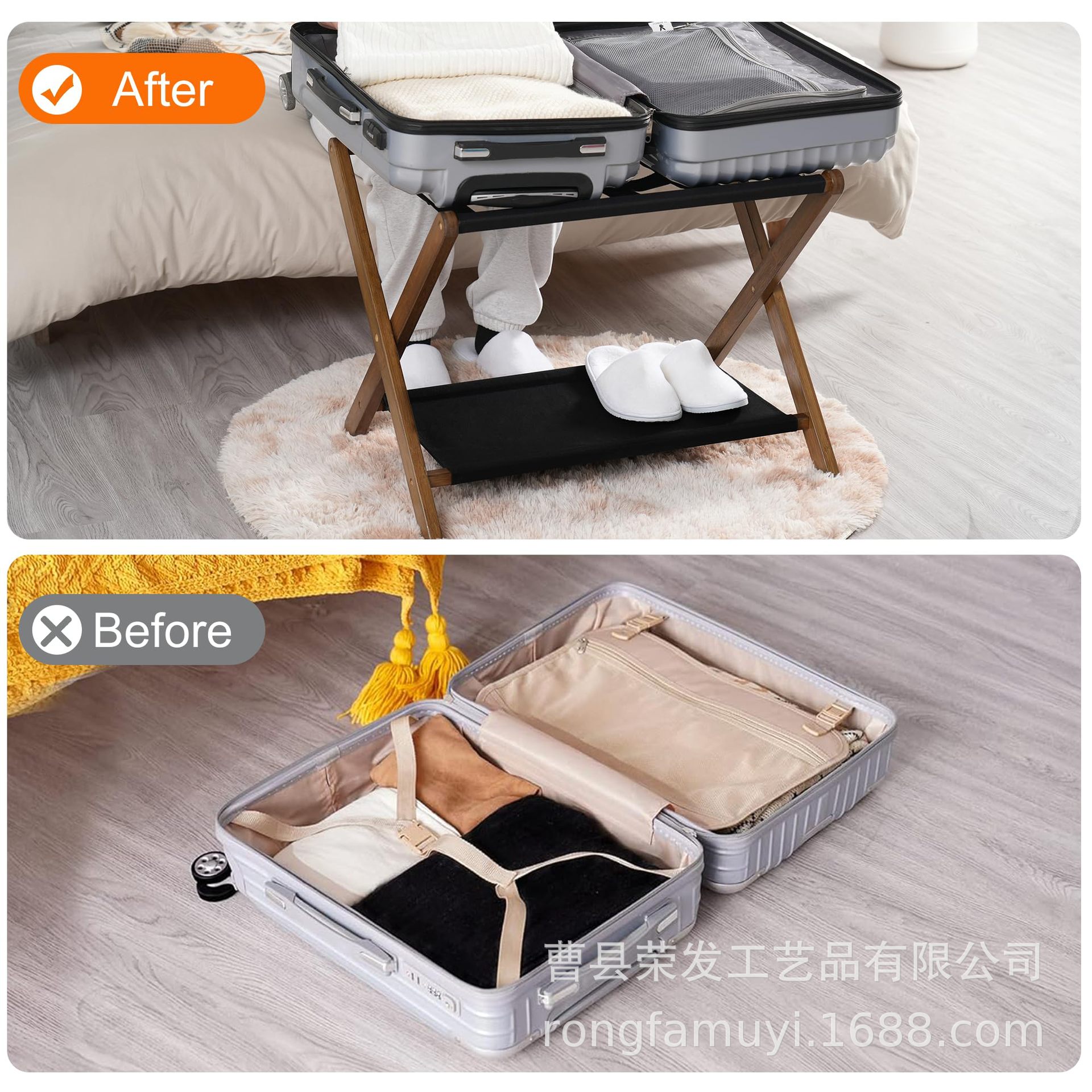 나무 더블 레이어 수하물 보관 랙 호텔 침실 접히는 계층화 된 수하물 신발 선반 바닥재 단단한 목재 보관 랙스토어 가기
