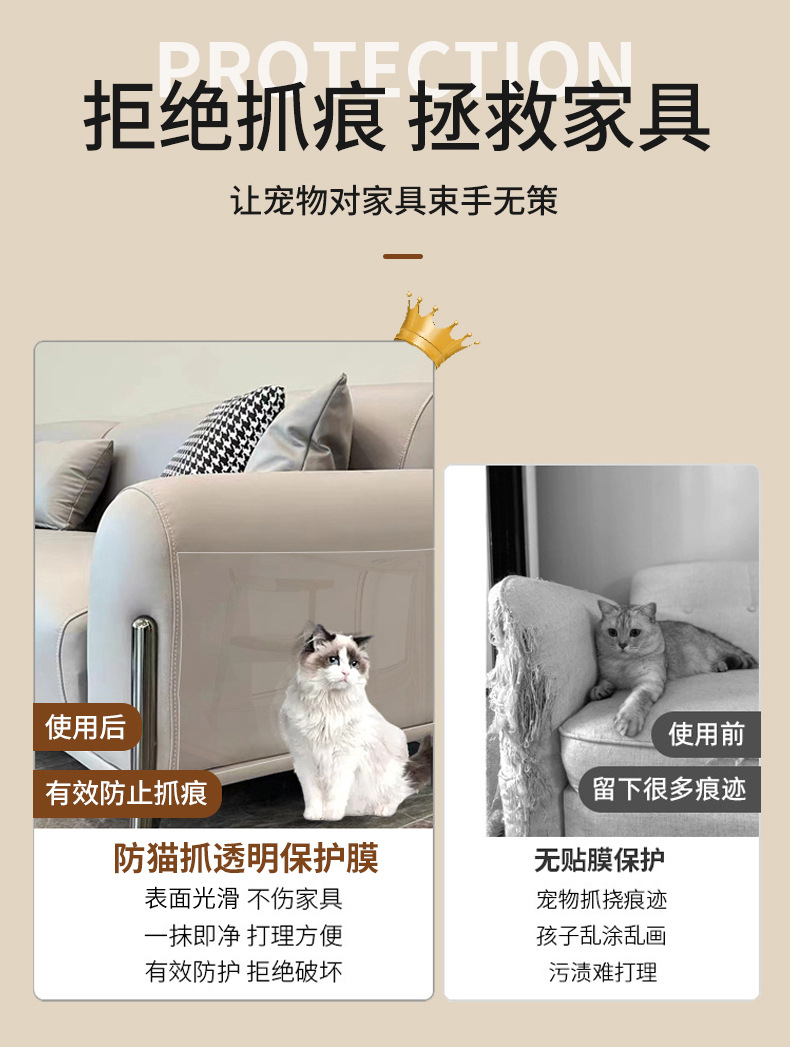 PVC 투명 이동식 접착제 단면 긁힘 방지 가구 소파 보호 스티커 안티 고양이 스크래치 스티커 고양이 스크래치 스티커 도매스토어 가기