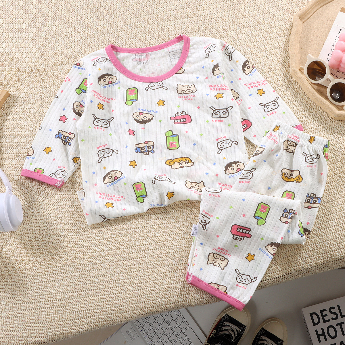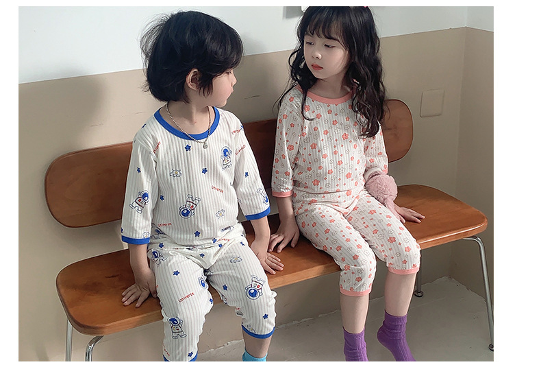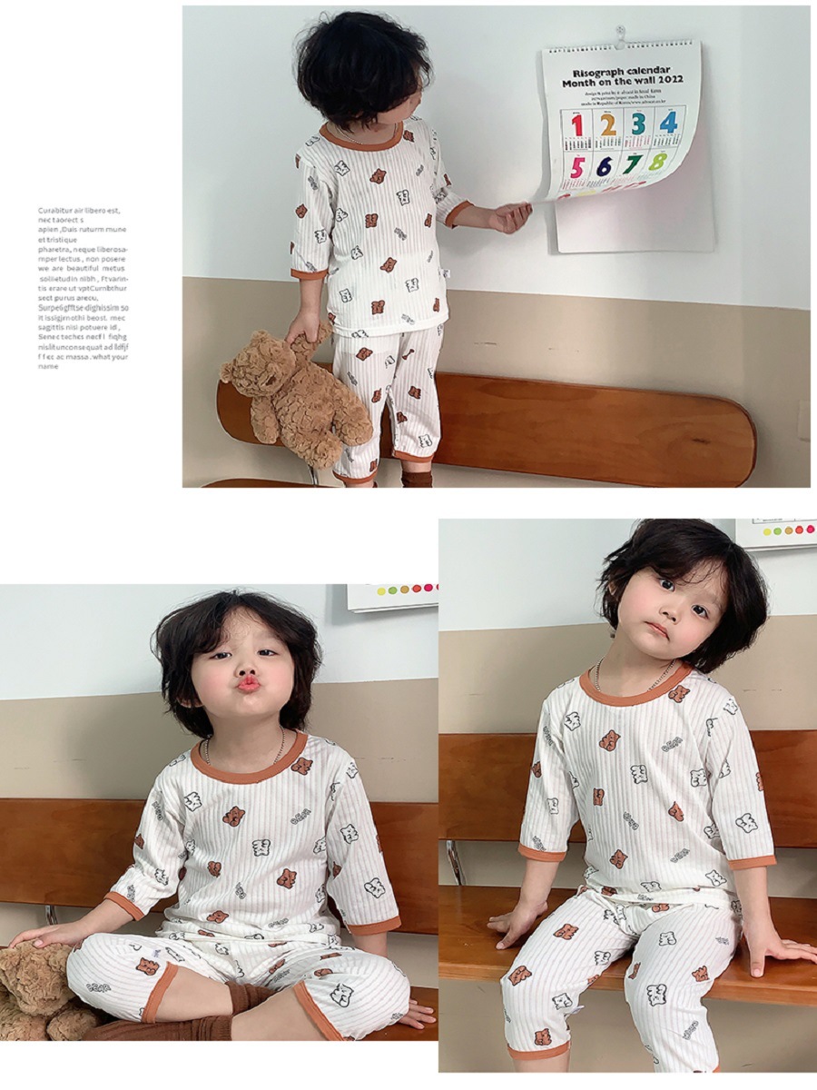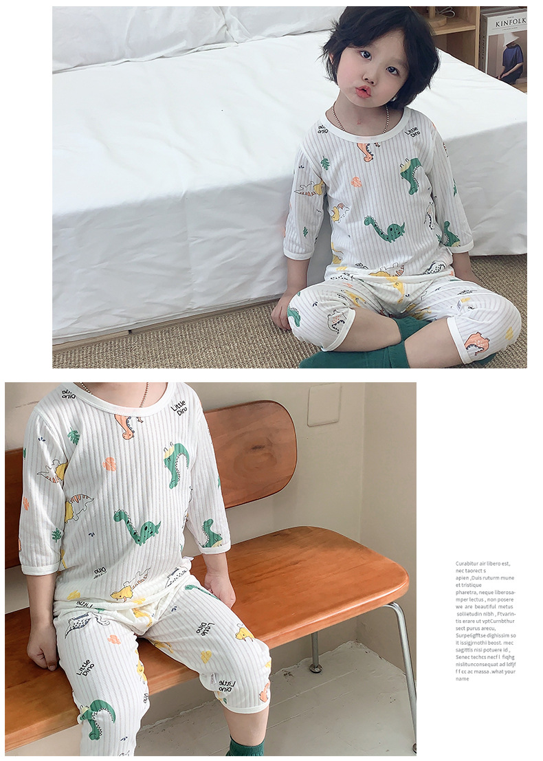 어린이 7 점 세트 여름 클래스 A 소년 소녀 아기 홈 옷 소녀 만화 뼈없는 에어컨 옷 중형 및 대형 어린이 얇은스토어 가기