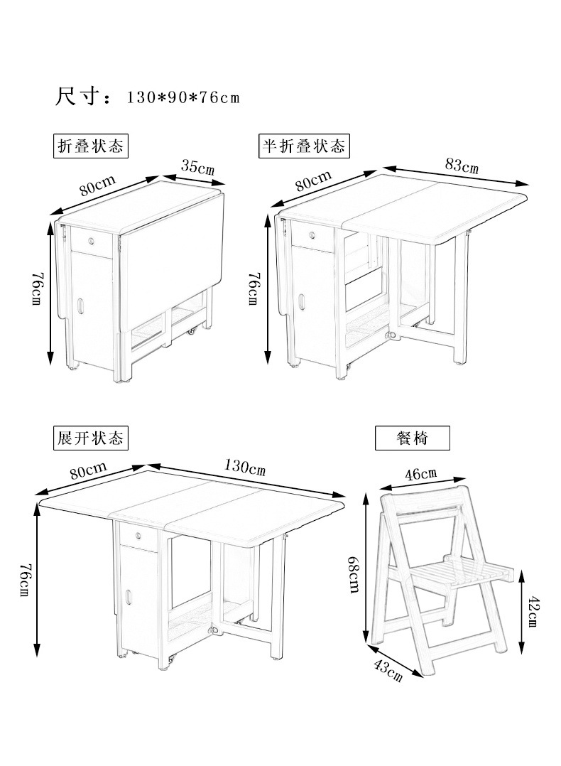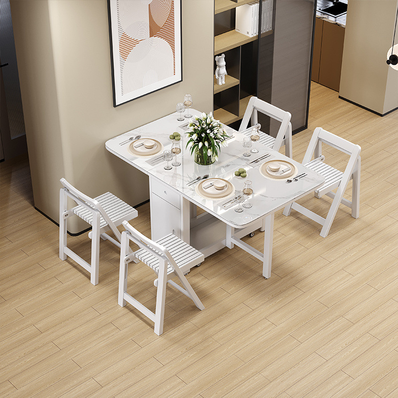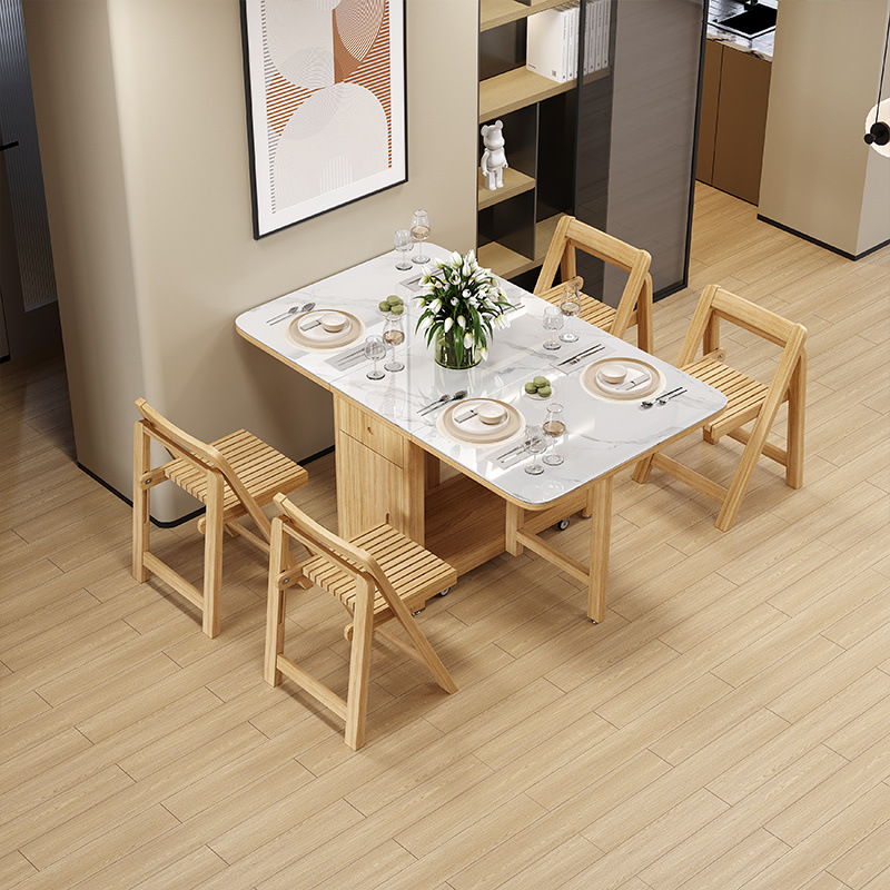 북유럽 단단한 나무 식탁 가정용 작은 아파트 개폐식 접히는 직사각형 현대 간단한 식탁 및 의자 조합스토어 가기