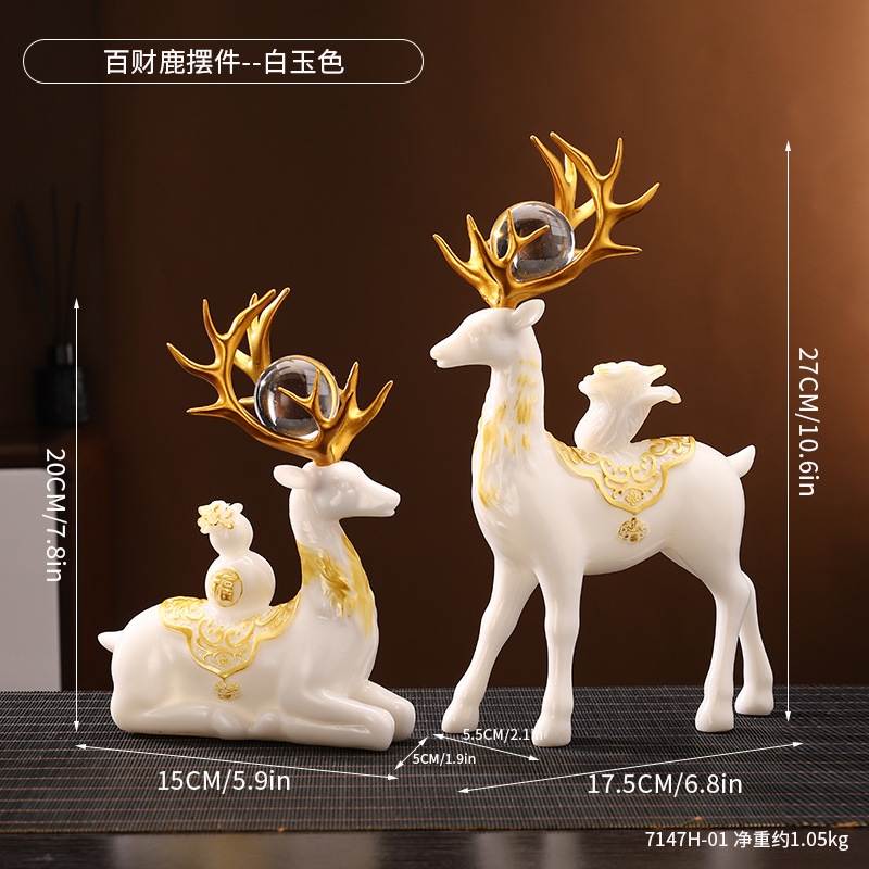 • 7147H-01 Baicai 사슴 장식--백색 옥 색상