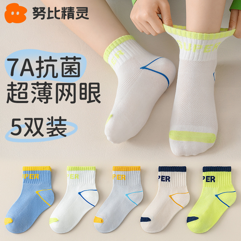 남아 얇은 양말, 여름용 메쉬 통기성 땀 흡수, 큰 아이 남아용 무봉제 방취 스포츠 면 양말, 항균스토어 가기