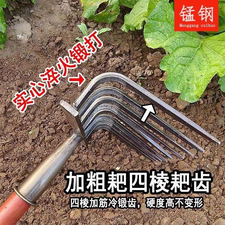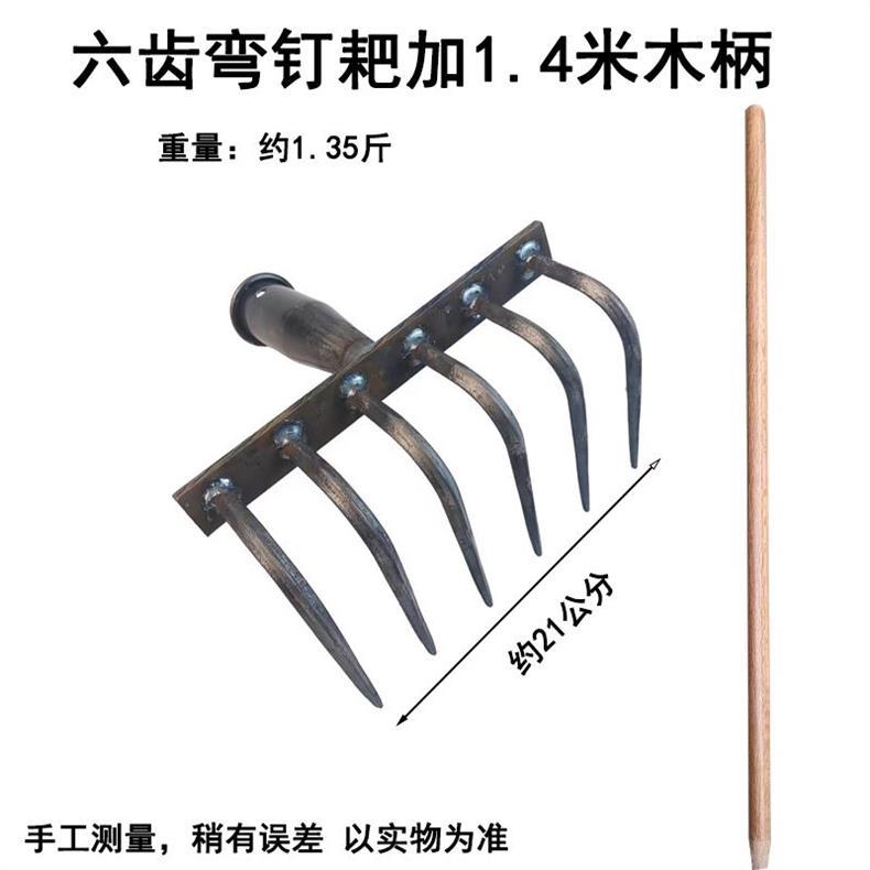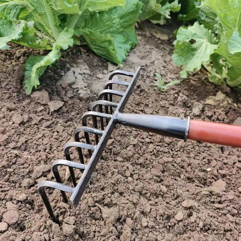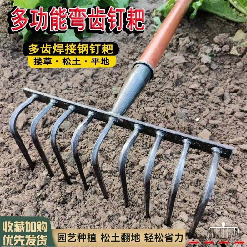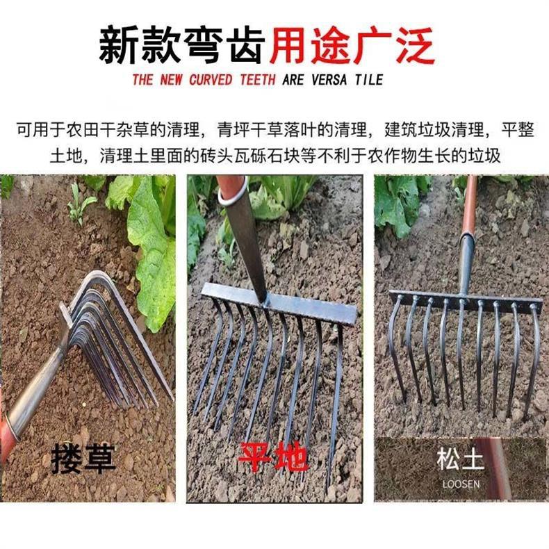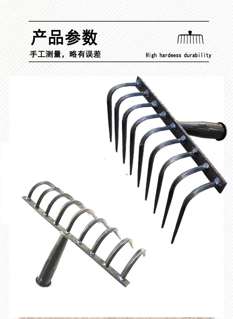 9 개의 이빨 갈퀴가 흙을 돌리고 인공물을 느슨하게하는 새로운 구식 농업 철 갈퀴 갈퀴는 망간 강철 갈퀴를 두껍게 만들었습니다.