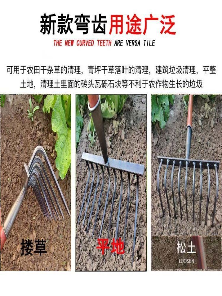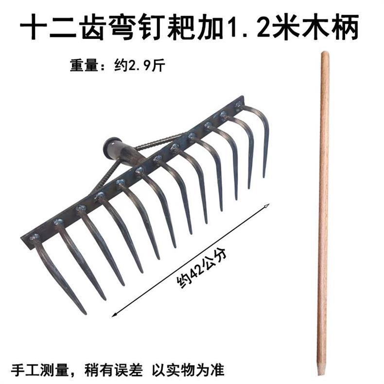 • 1.2 m 나무 손잡이가있는 새로운 두꺼운 12 치아 곡선 갈퀴