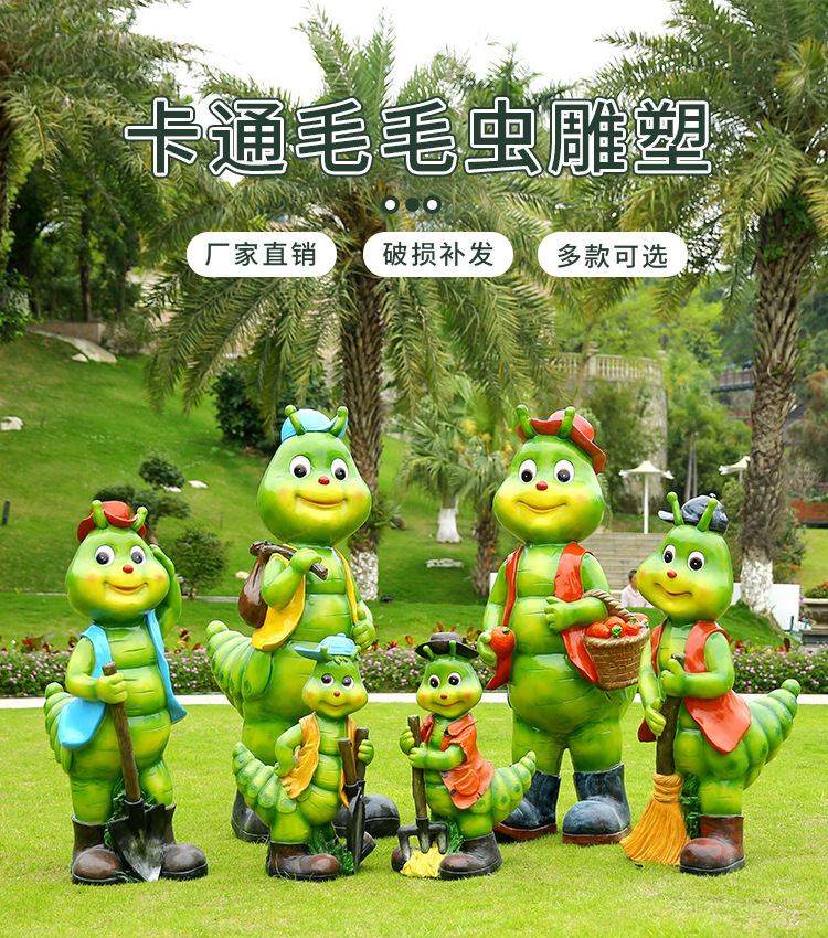 유리 섬유 강화 플라스틱 애벌레 조각 장식품 야외 정원 풍경 동물 만화 잔디 장식 공원 경치 스케치