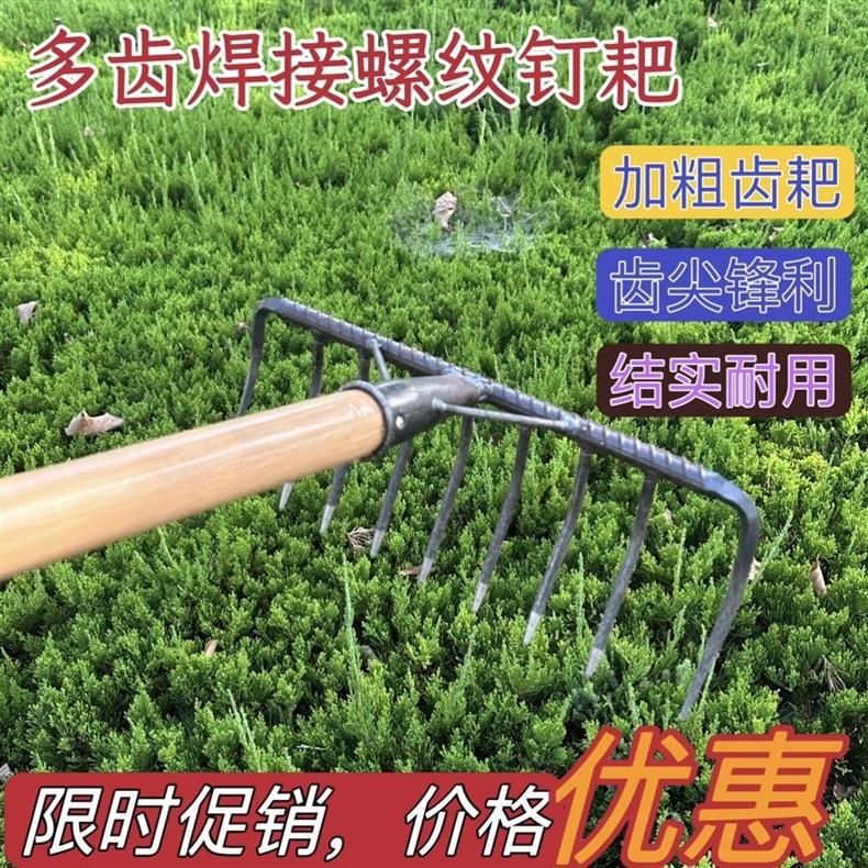 잔디를 갈퀴로 만들고 땅을 두껍게하고 내구성있는 멀티 이빨 갈퀴 잡초 갈퀴 멀티 이빨 갈퀴로 바꾸기 위해 벨트가 달린 나사 농강 갈퀴스토어 가기