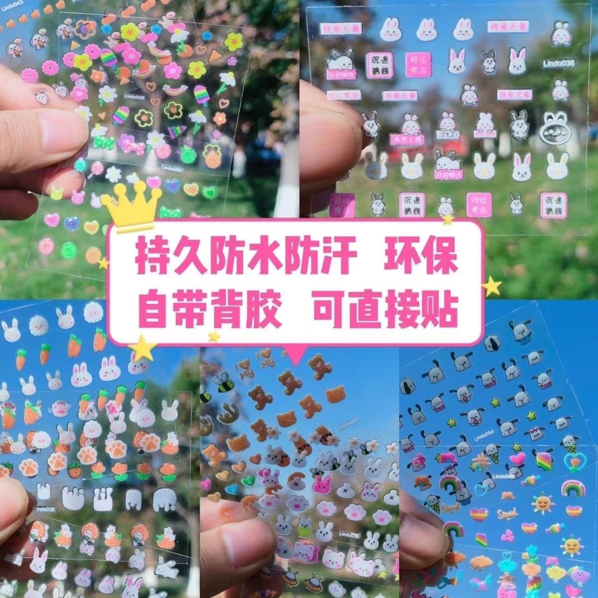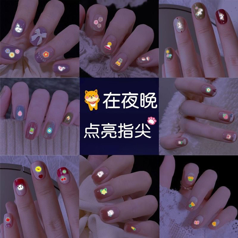 빛나는 네일 스티커 3D 어린이 빛나는 네일 스티커 방수 네일 아트 데칼 꽃 나비 KT 고양이 귀여운 네일 쥬얼리스토어 가기