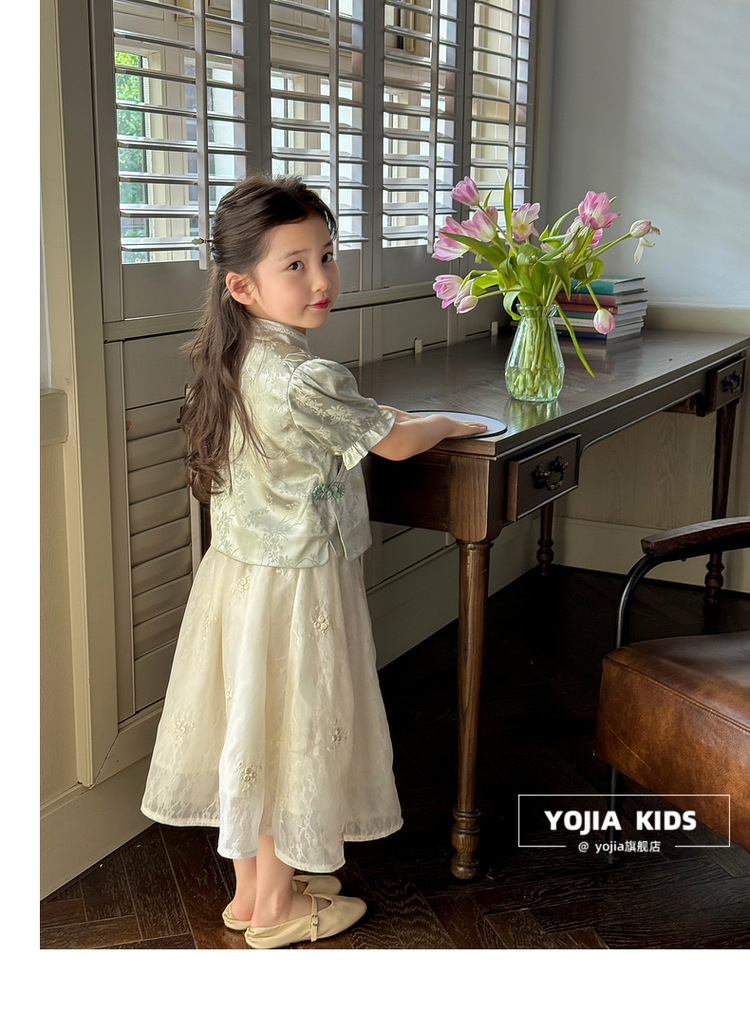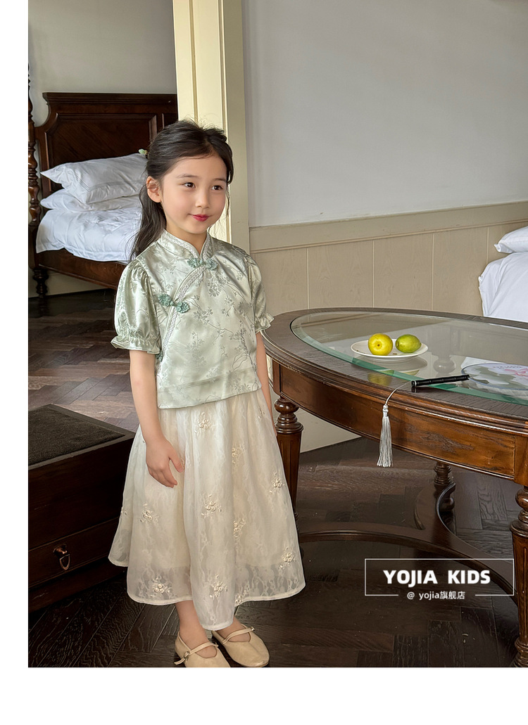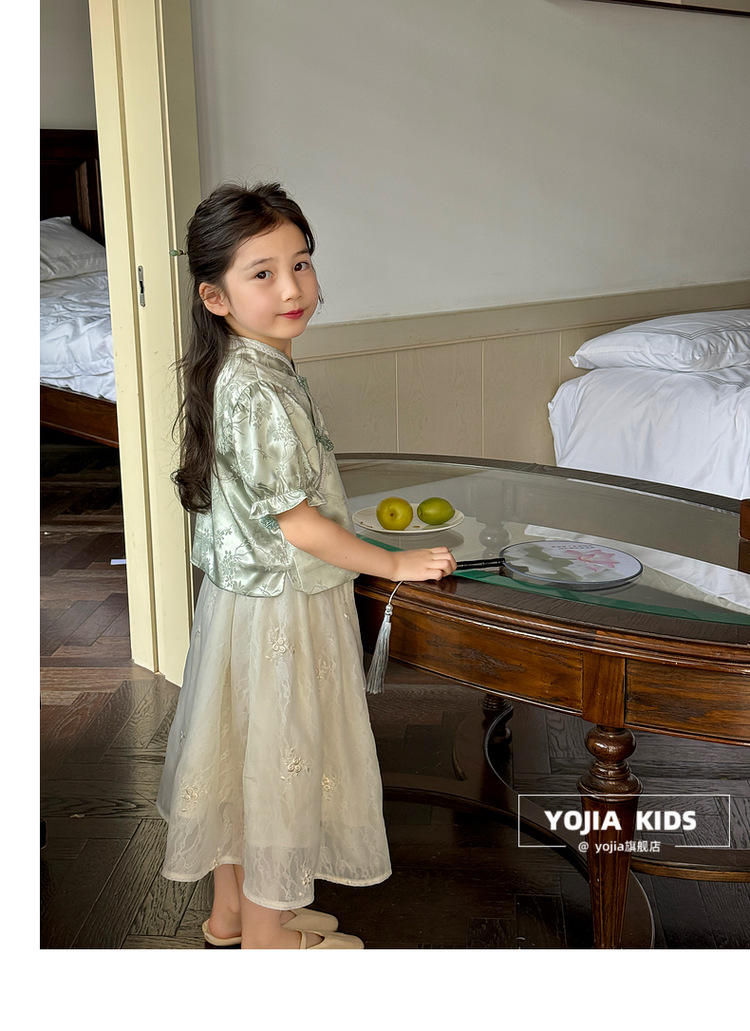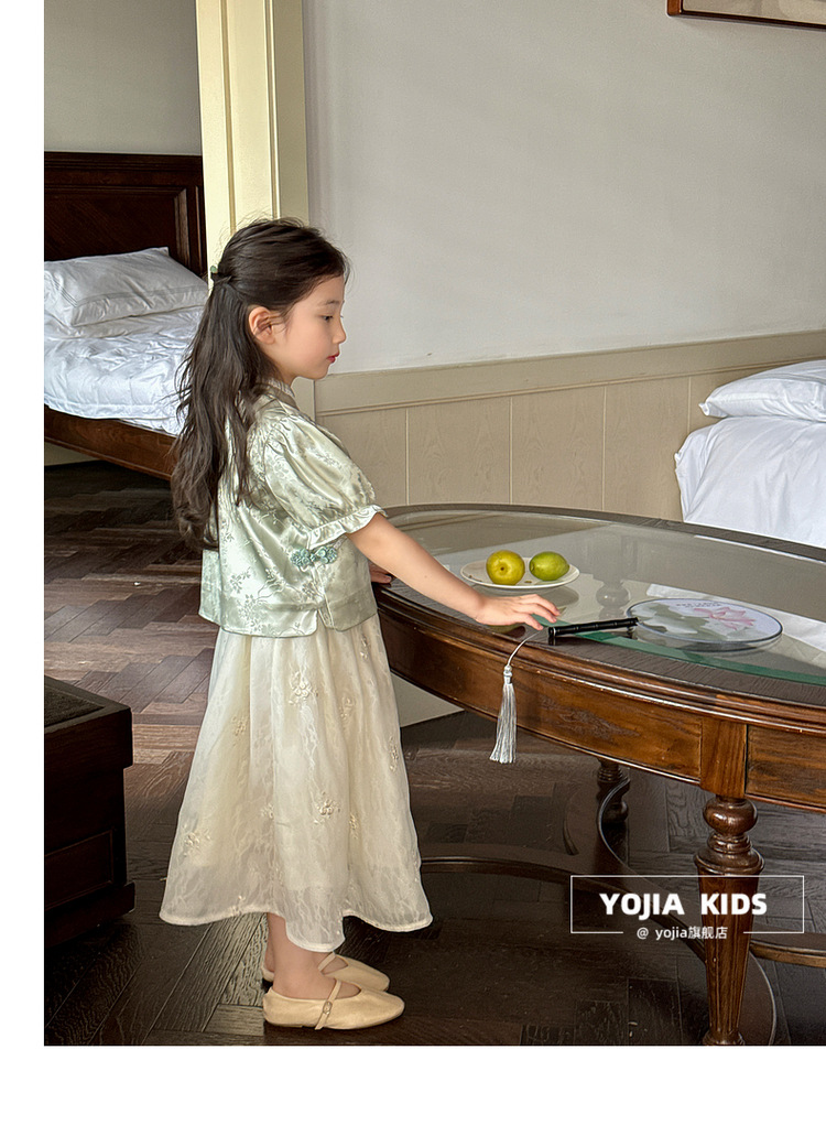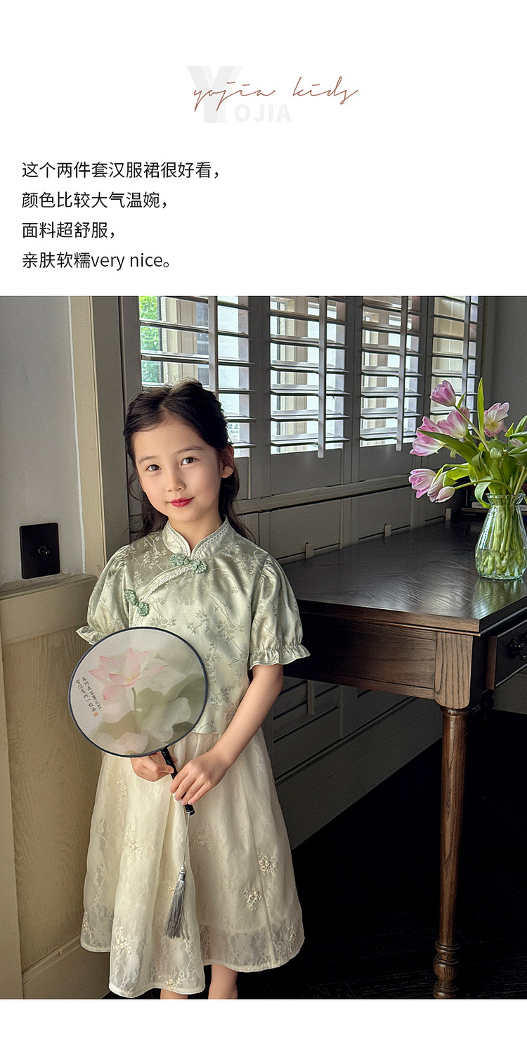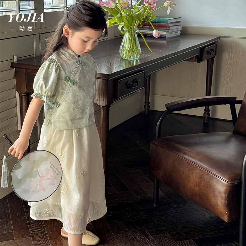 YOJIA 어린이 의류 한푸 소녀의 2024 여름 새로운 중국 스타일 개선 어린 소녀 스커트 어린이 2 피스 원피스