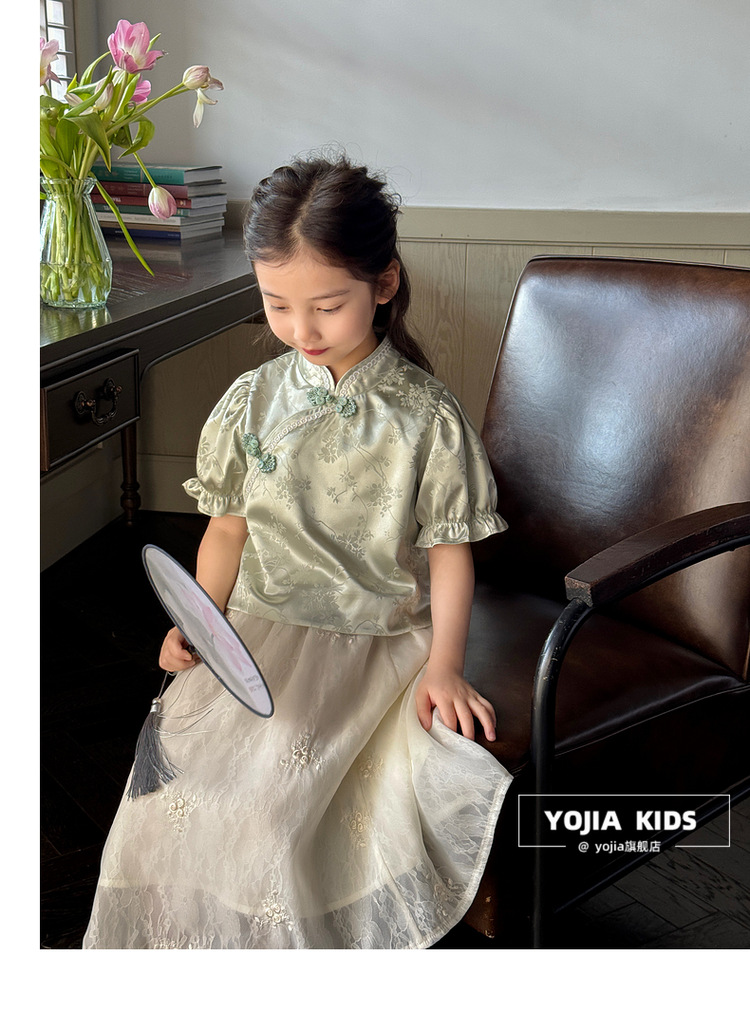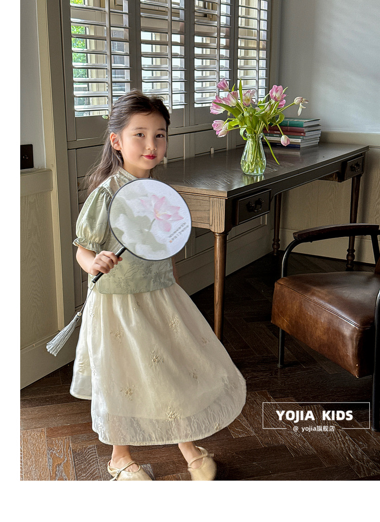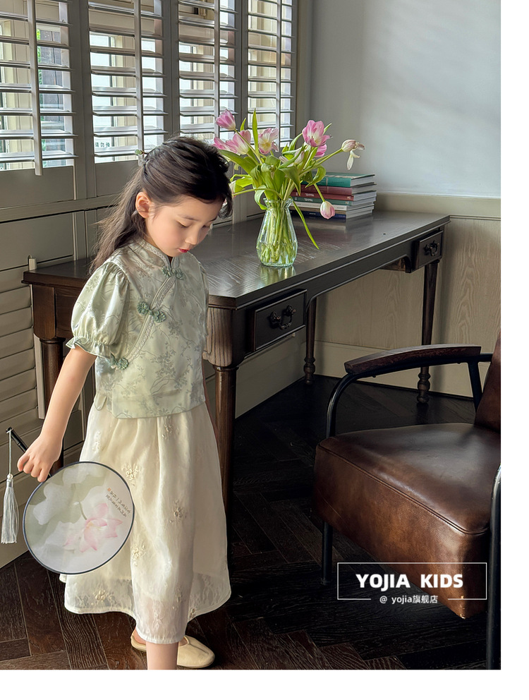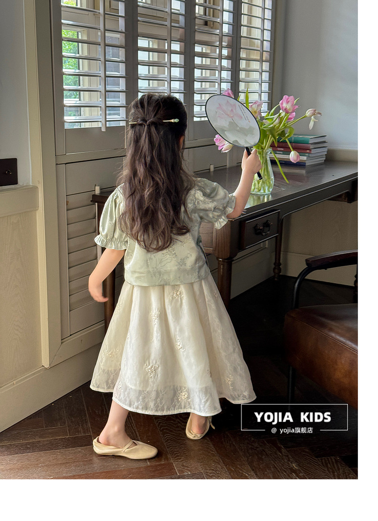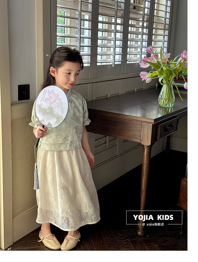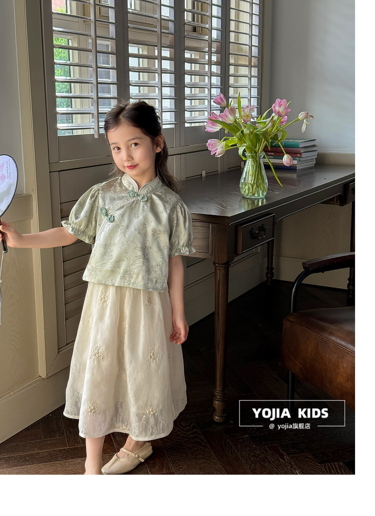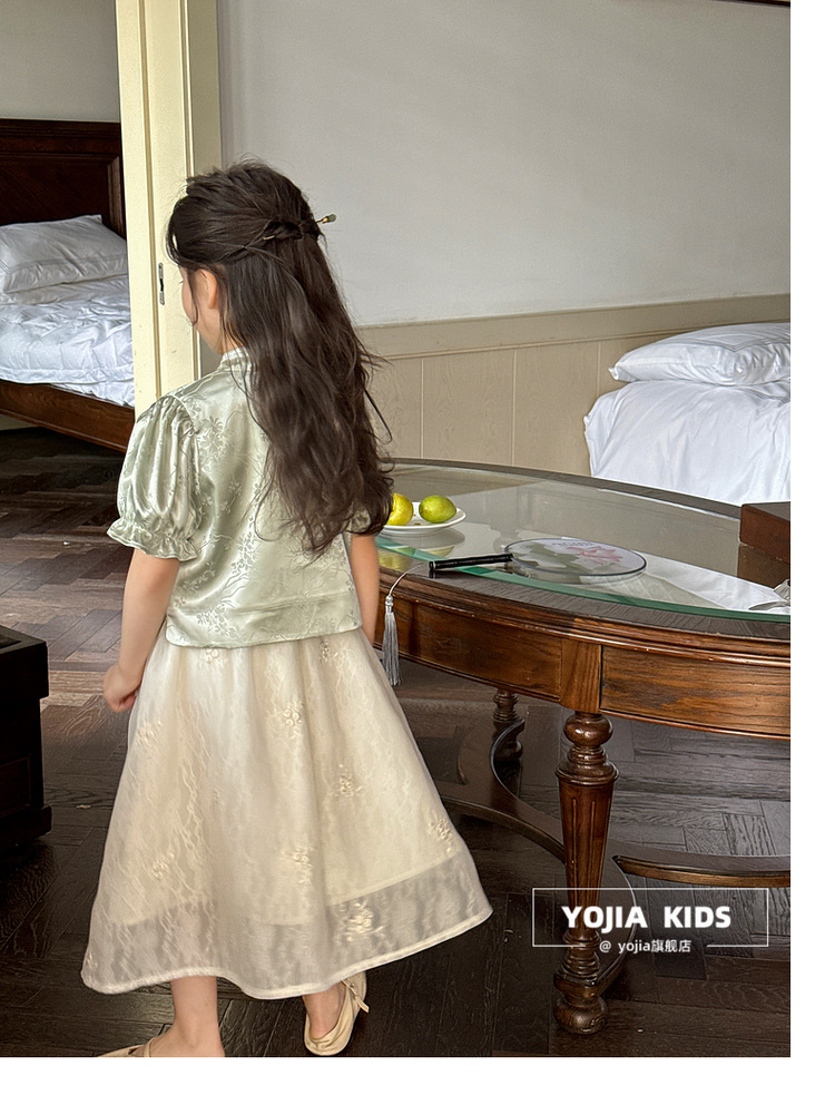 YOJIA 어린이 의류 한푸 소녀의 2024 여름 새로운 중국 스타일 개선 어린 소녀 스커트 어린이 2 피스 원피스