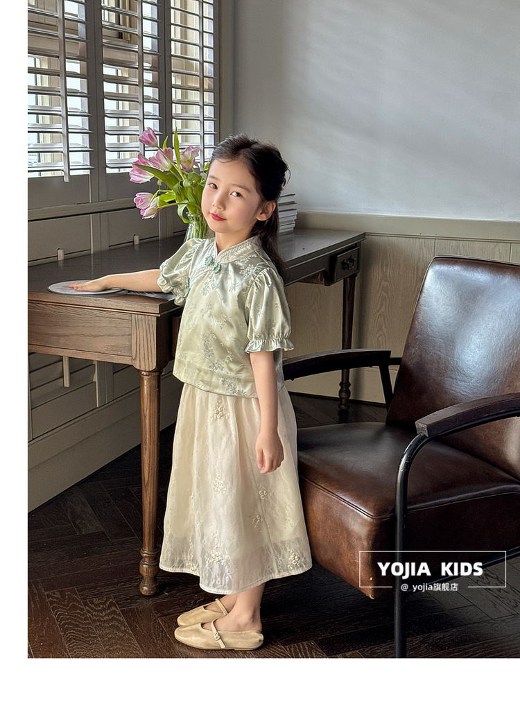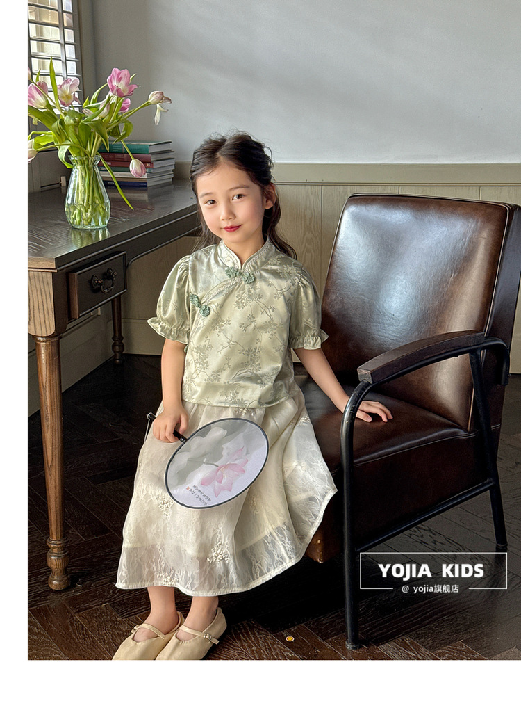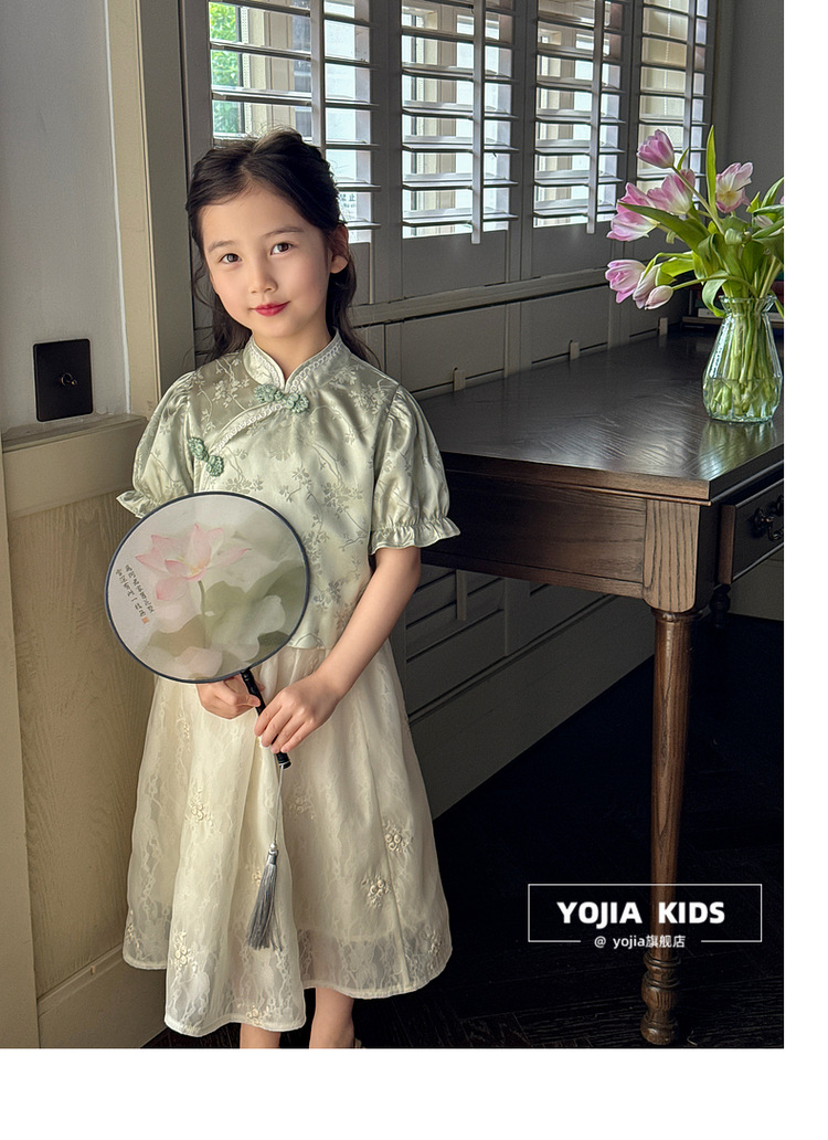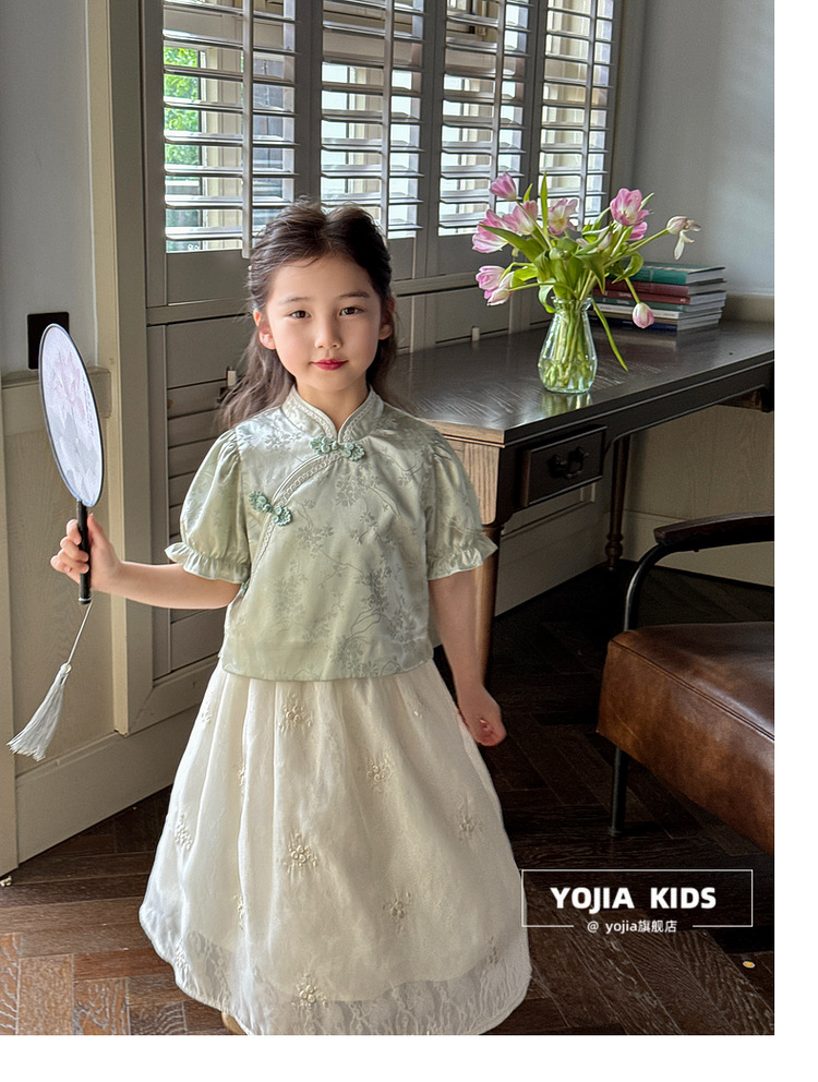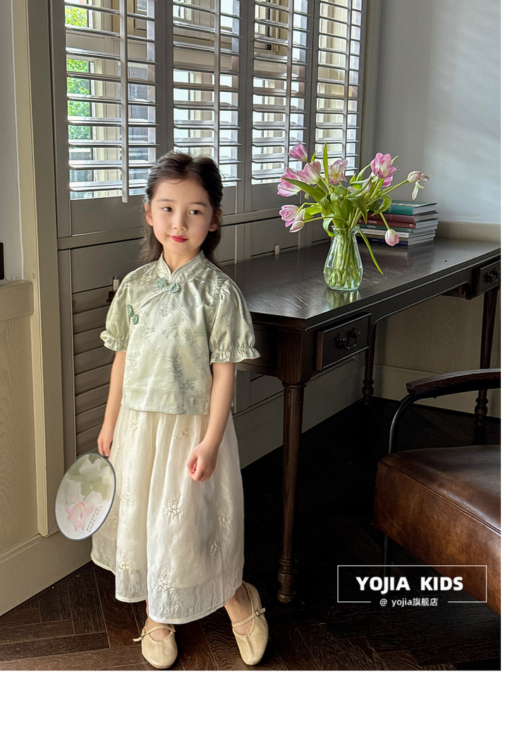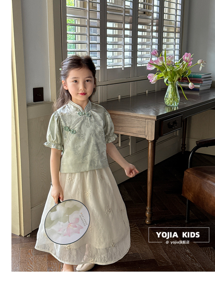 YOJIA 어린이 의류 한푸 소녀의 2024 여름 새로운 중국 스타일 개선 어린 소녀 스커트 어린이 2 피스 원피스