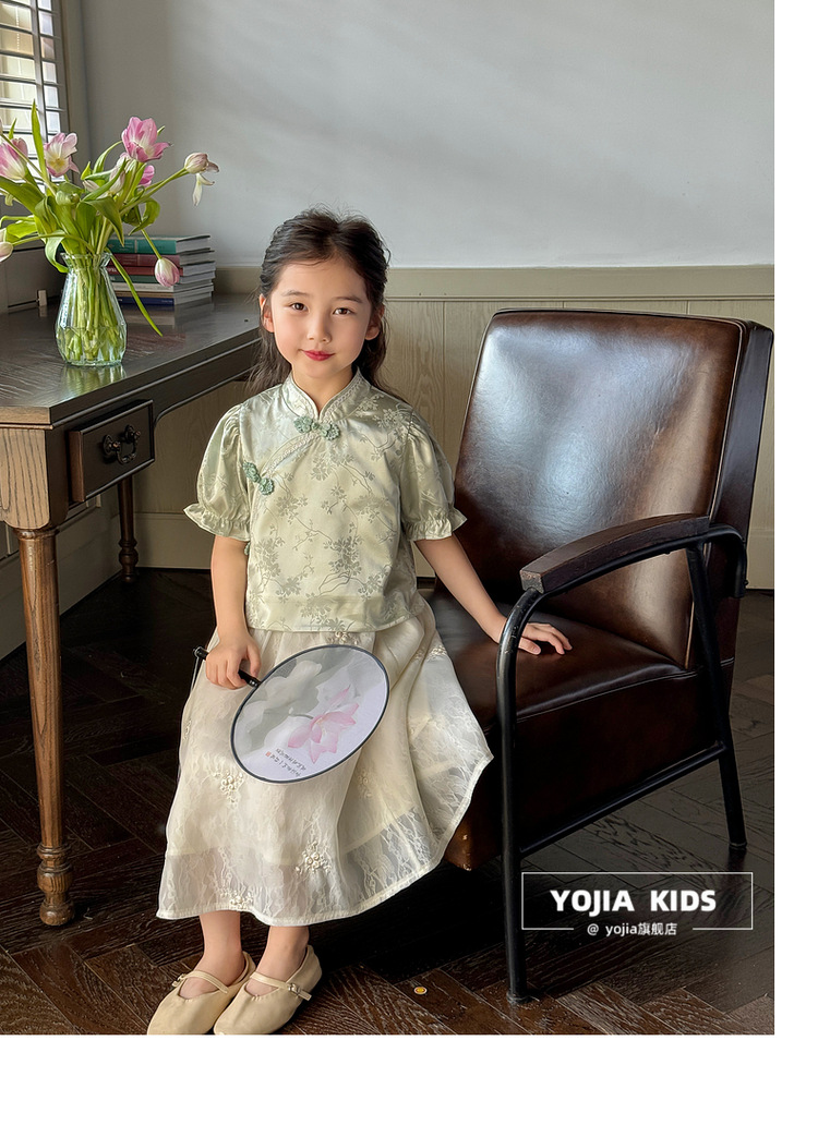 YOJIA 어린이 의류 한푸 소녀의 2024 여름 새로운 중국 스타일 개선 어린 소녀 스커트 어린이 2 피스 원피스스토어 가기