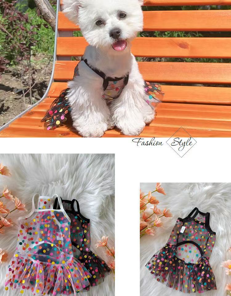 커플 강아지 옷 봄과 여름 얇은 테디 비숑 포메라니안 작은 개 애완 동물 슬링 공주 드레스