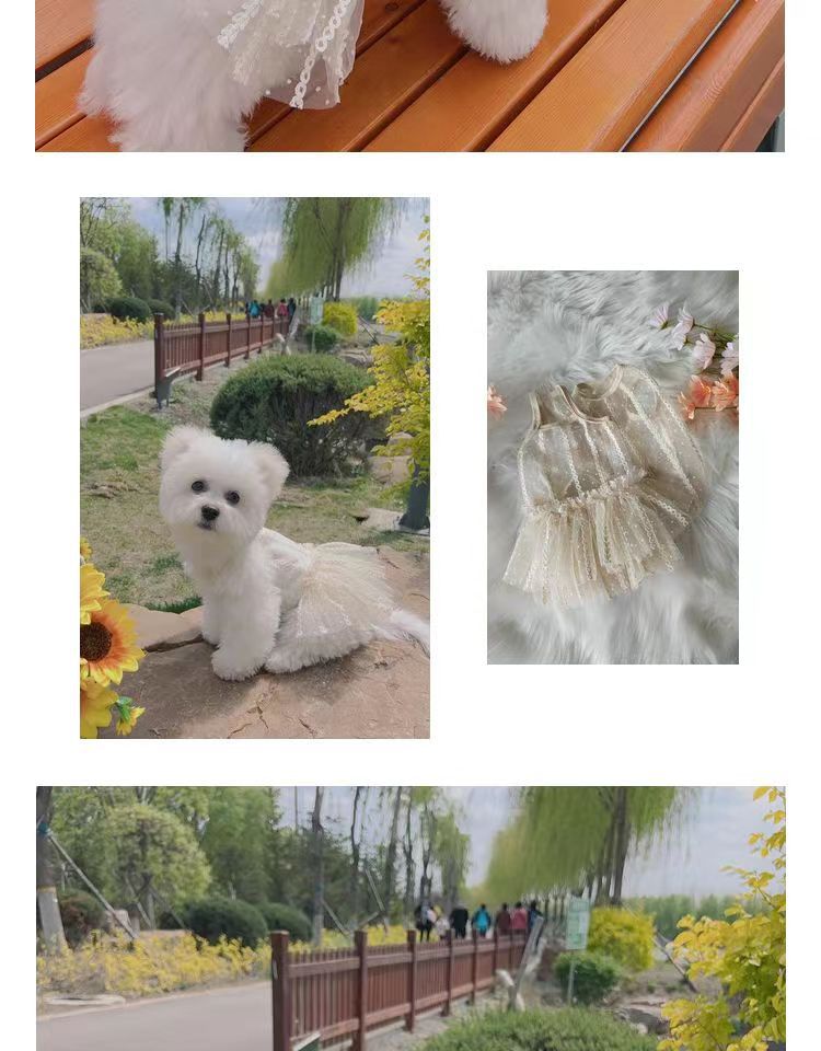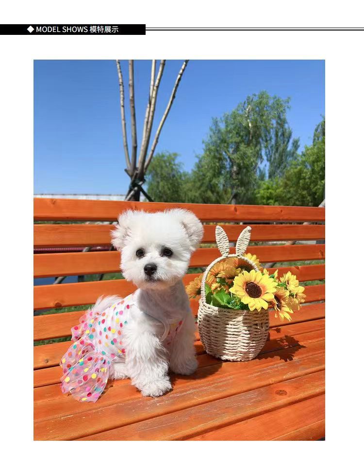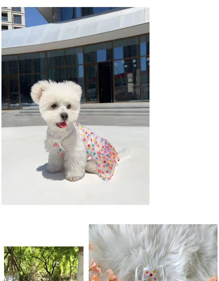 커플 강아지 옷 봄과 여름 얇은 테디 비숑 포메라니안 작은 개 애완 동물 슬링 공주 드레스스토어 가기
