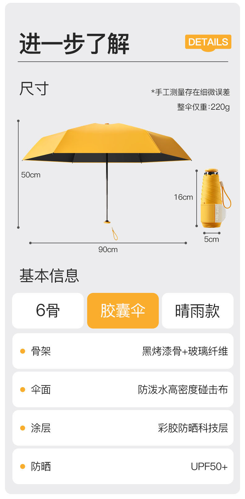 • [블랙] 6본비닐캡슐우산-미니휴대용 UPF50+