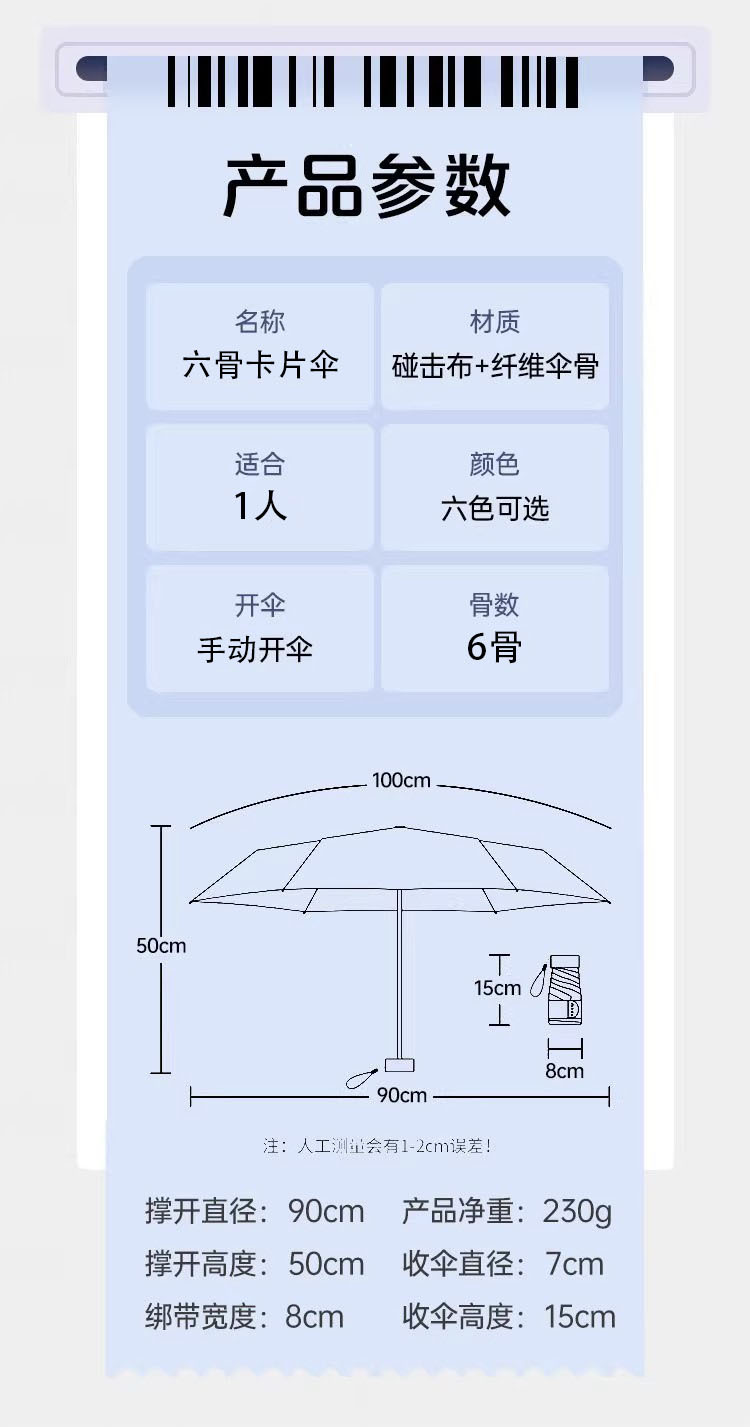 • [네이비블루] 6본비닐캡슐우산-미니휴대용 UPF50+