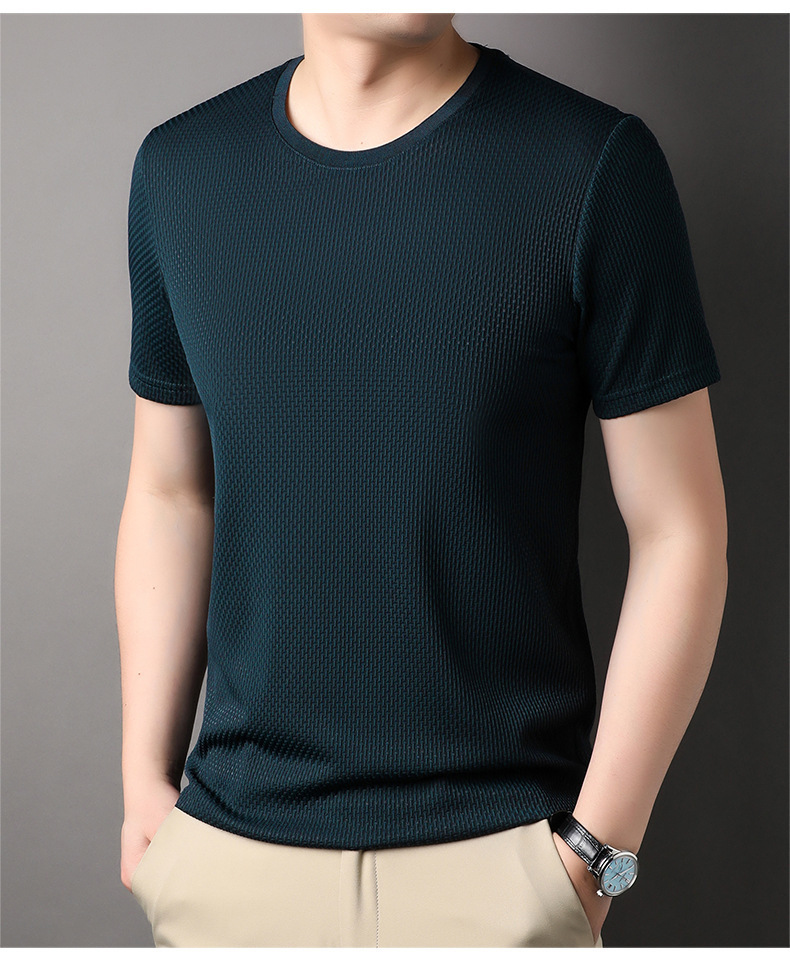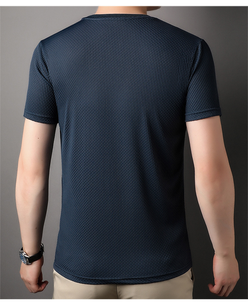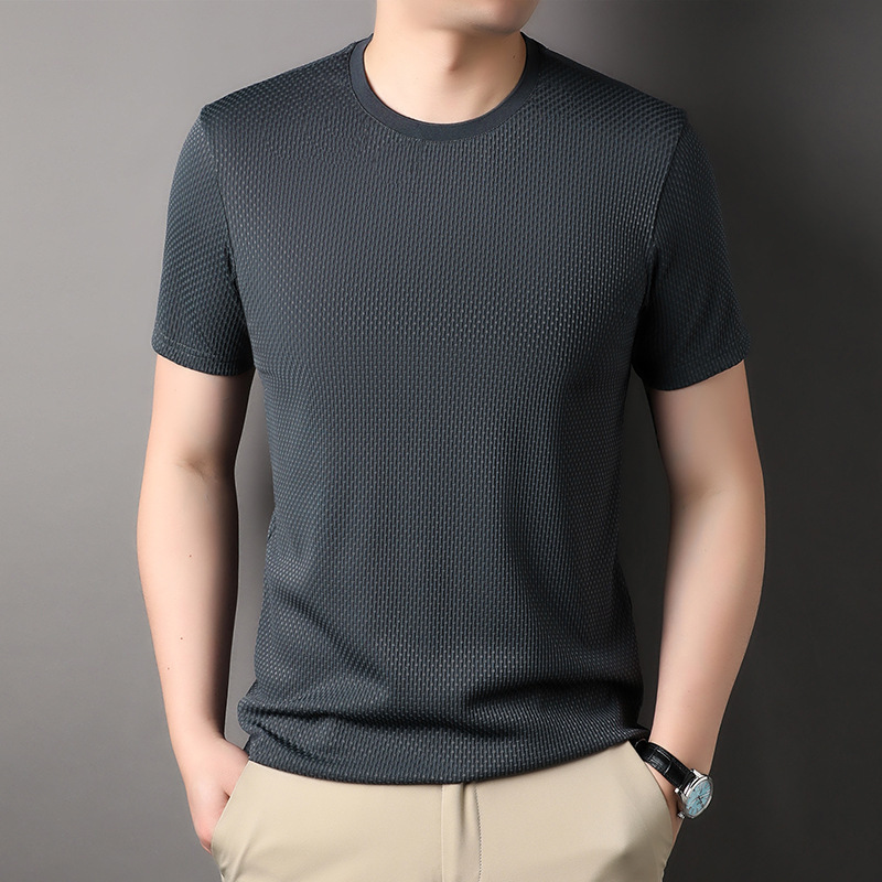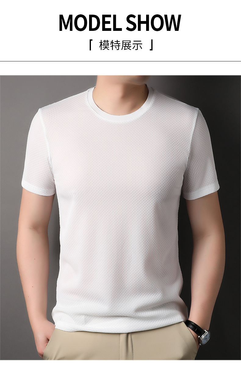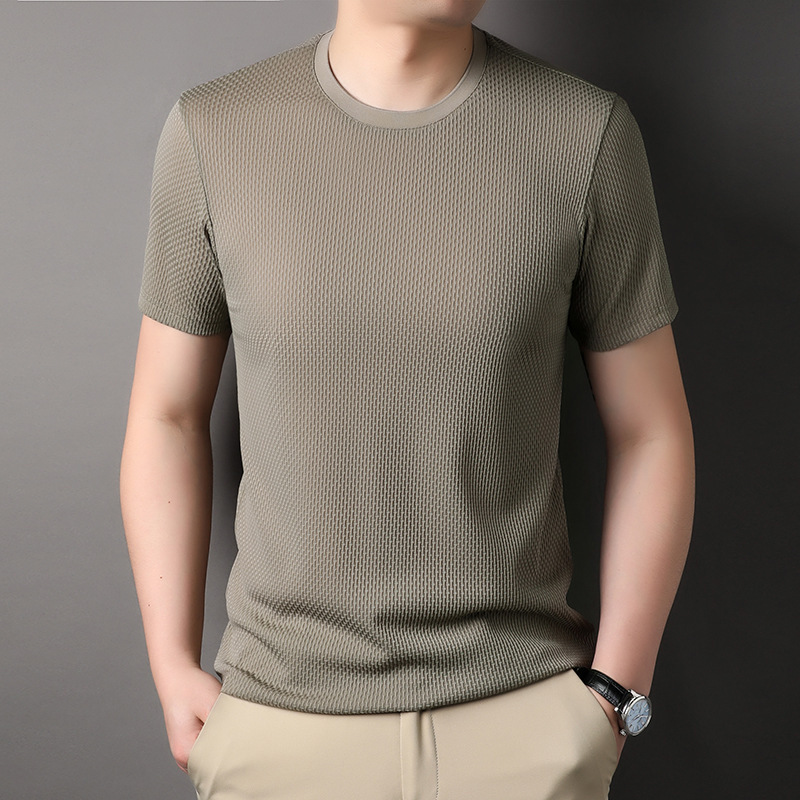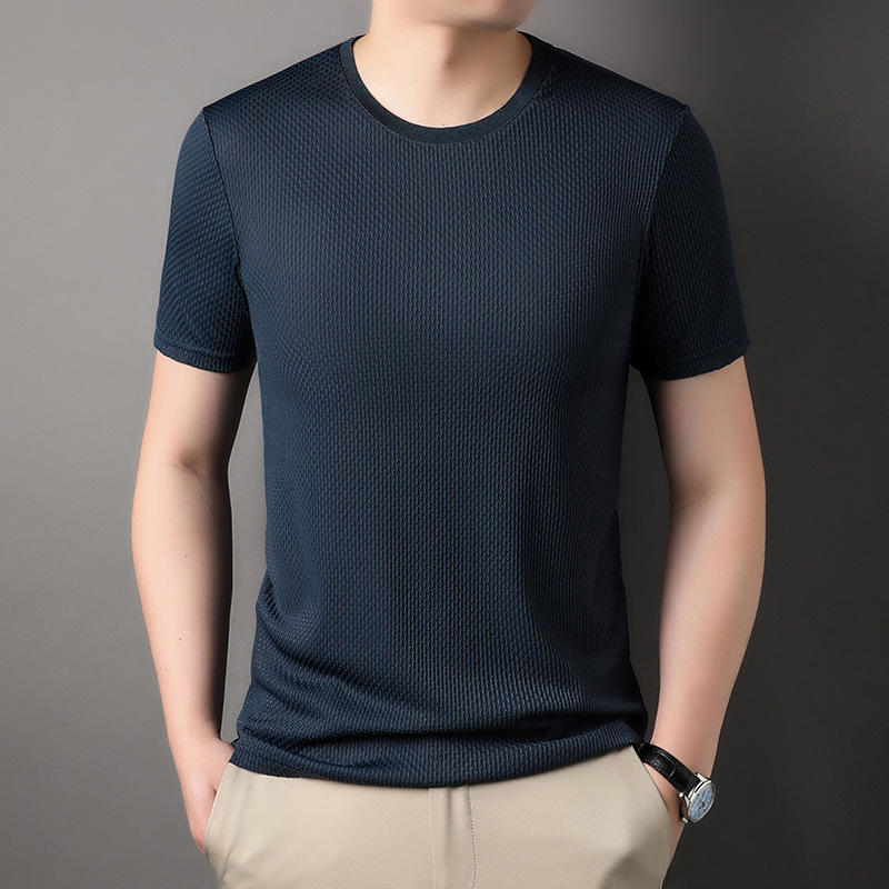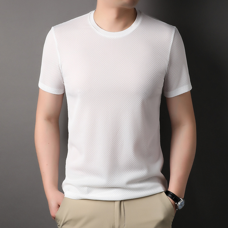 둥근 목 느슨한 유행 우아한 반팔 티셔츠 남자 2023 여름 새로운 한국 스타일 간단한 우아한 빠른 건조 탑스토어 가기