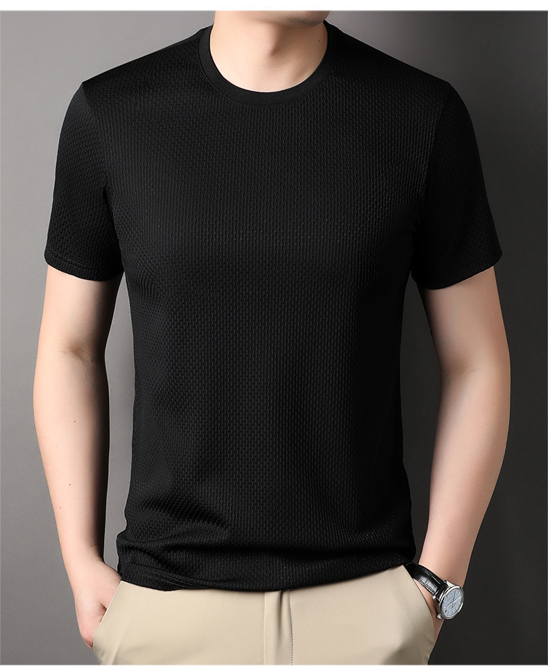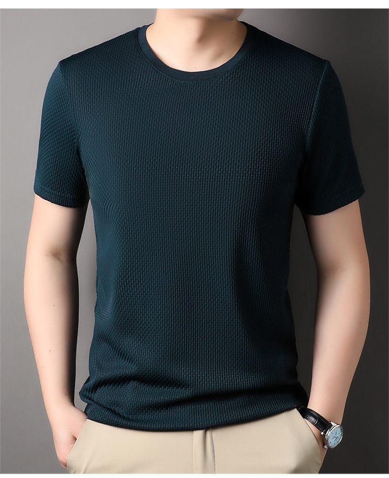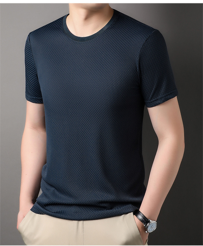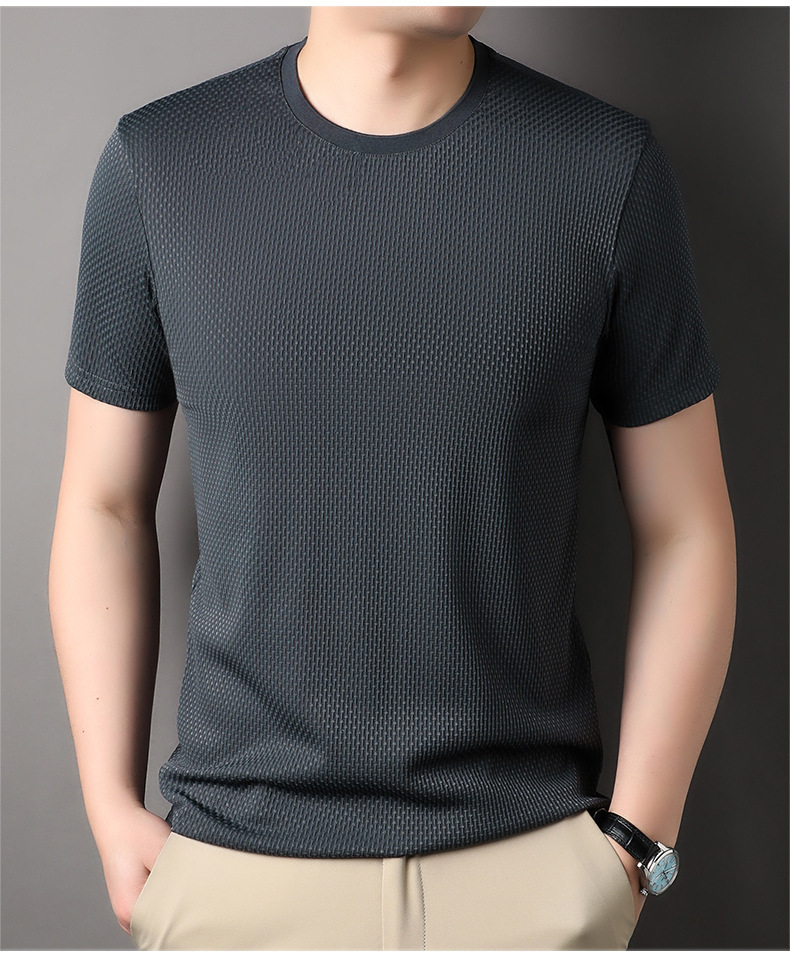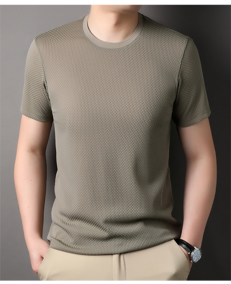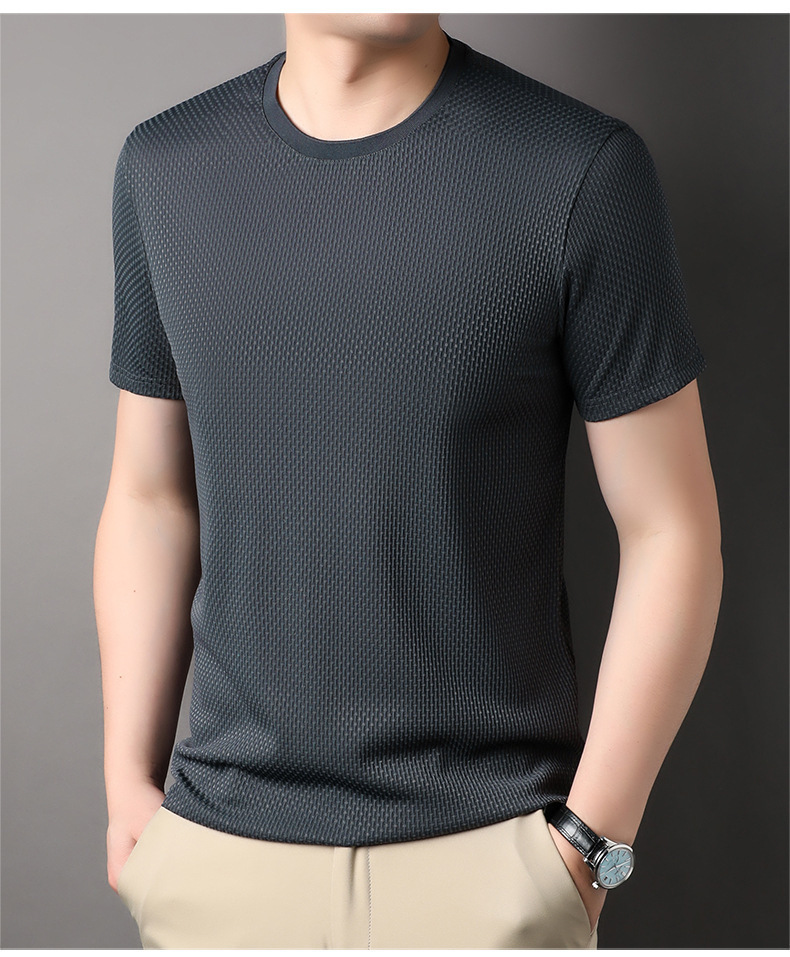 둥근 목 느슨한 유행 우아한 반팔 티셔츠 남자 2023 여름 새로운 한국 스타일 간단한 우아한 빠른 건조 탑스토어 가기