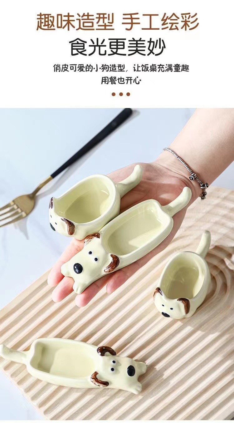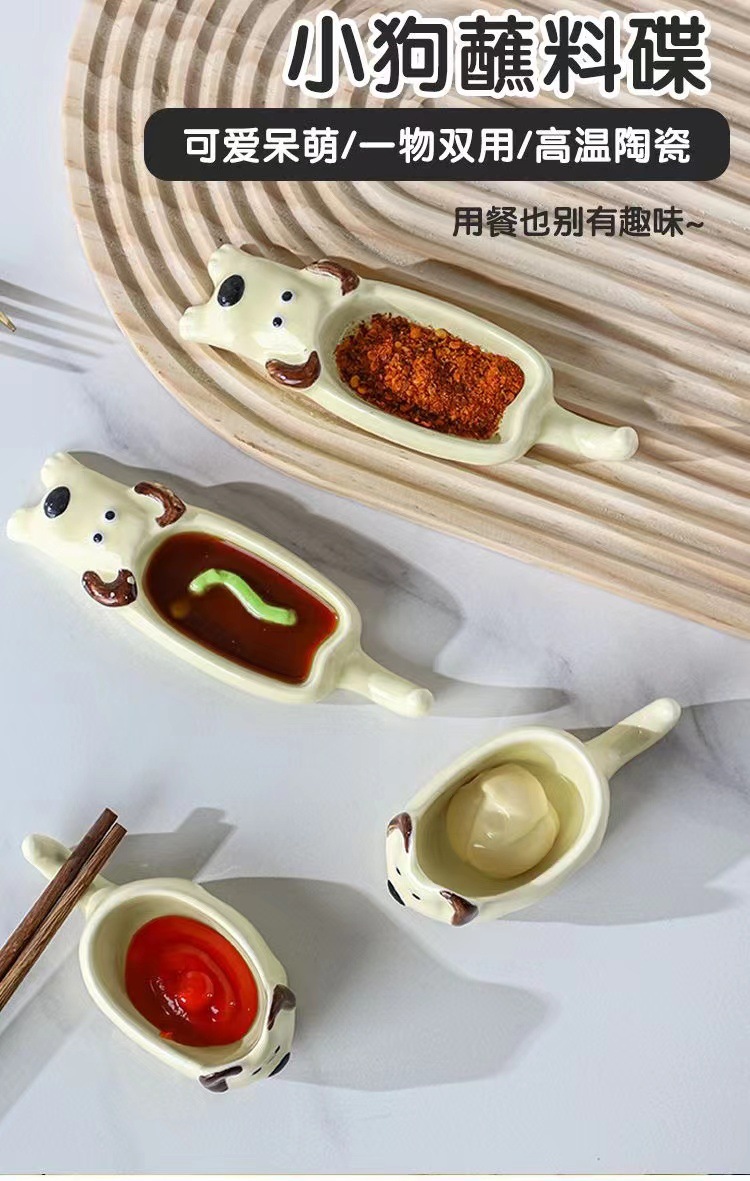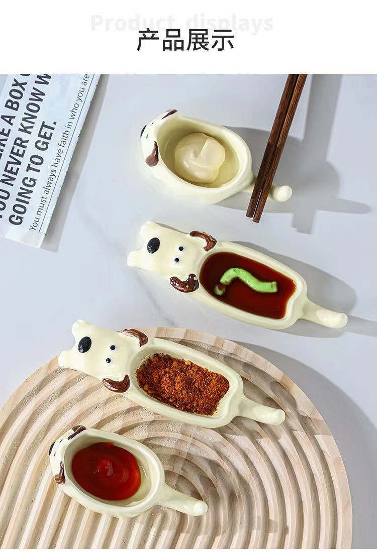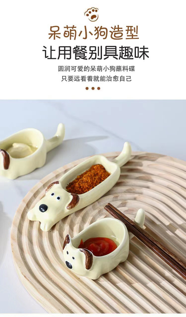 귀여운 총 만화 세라믹 딥 접시 창조적 인 고양이와 개 모양 뜨거운 냄비 손 반죽 단일 손잡이 맛 요리 가정용 조미료 작은 접시
