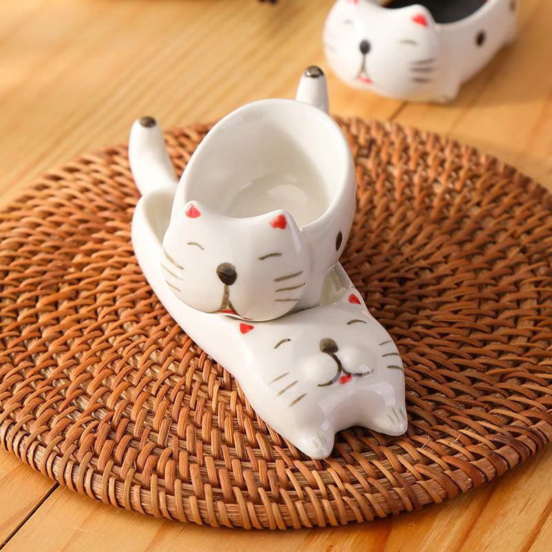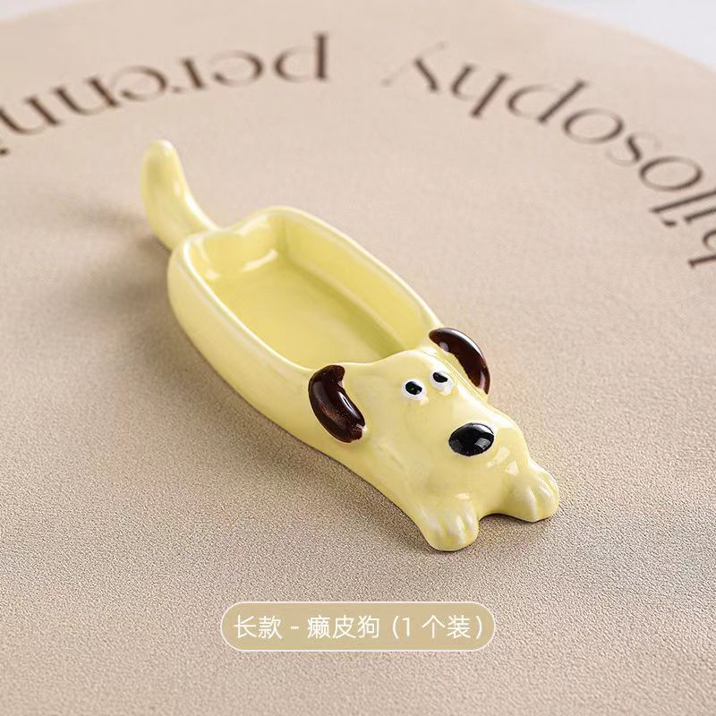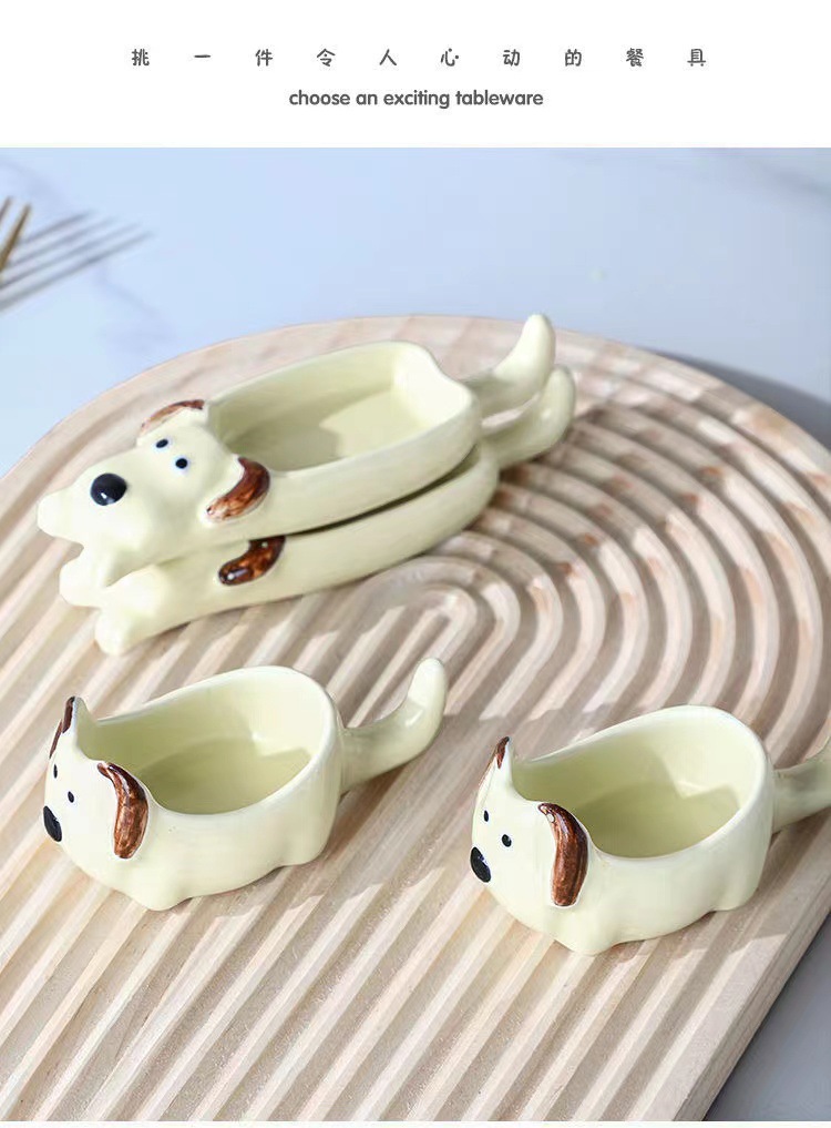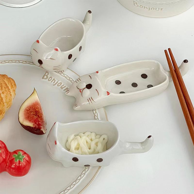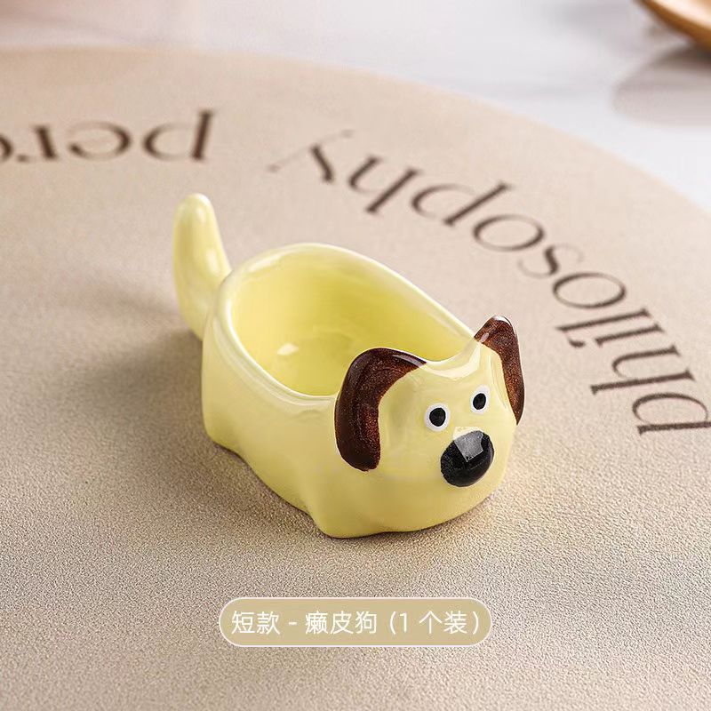 귀여운 총 만화 세라믹 딥 접시 창조적 인 고양이와 개 모양 뜨거운 냄비 손 반죽 단일 손잡이 맛 요리 가정용 조미료 작은 접시