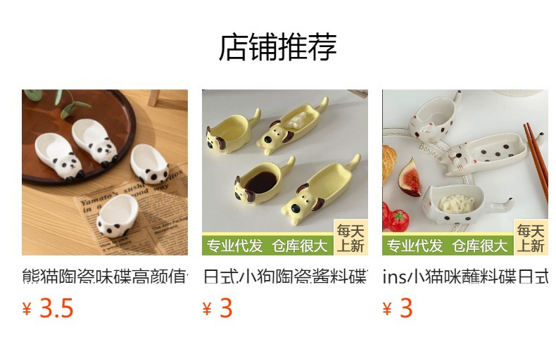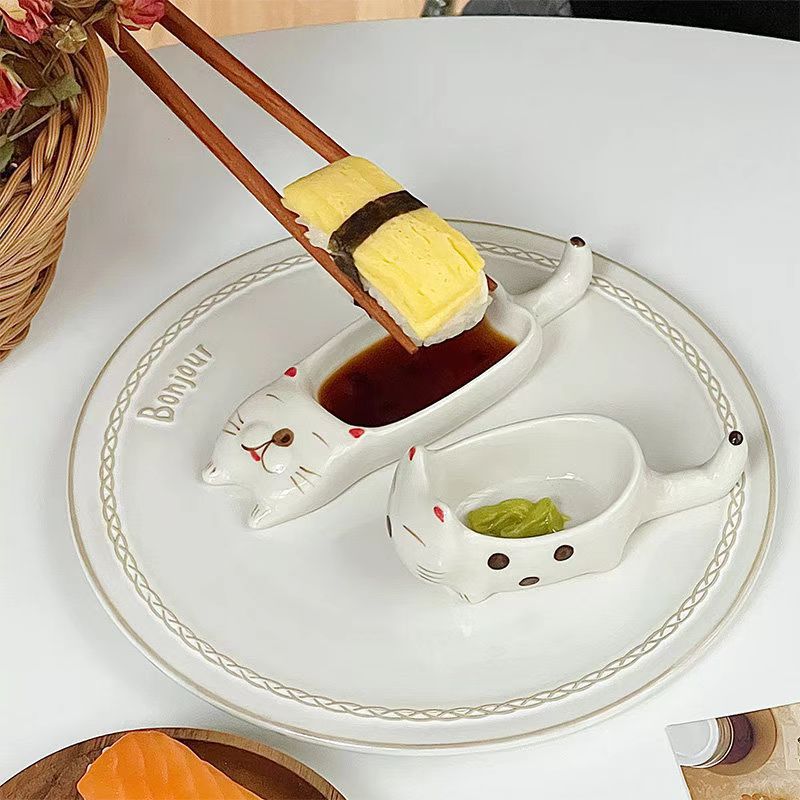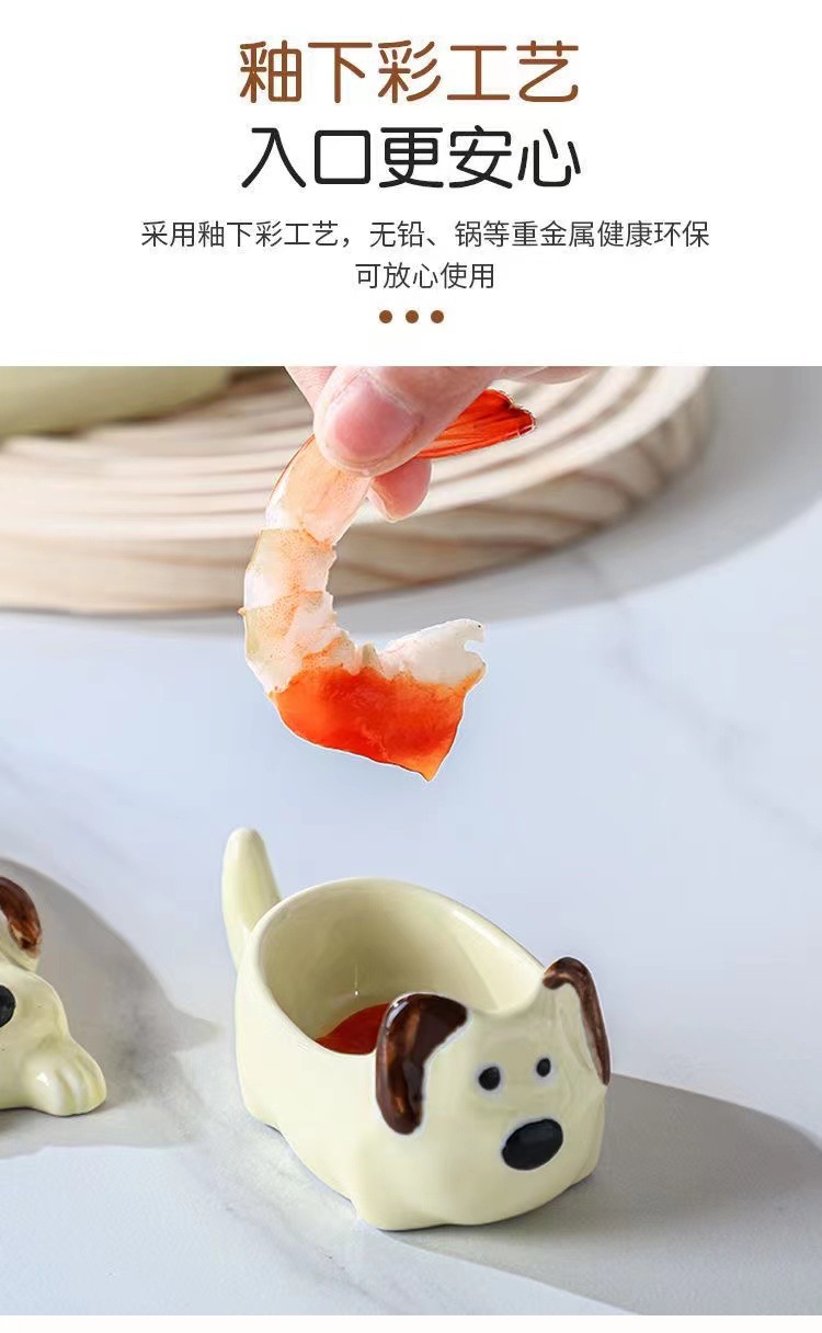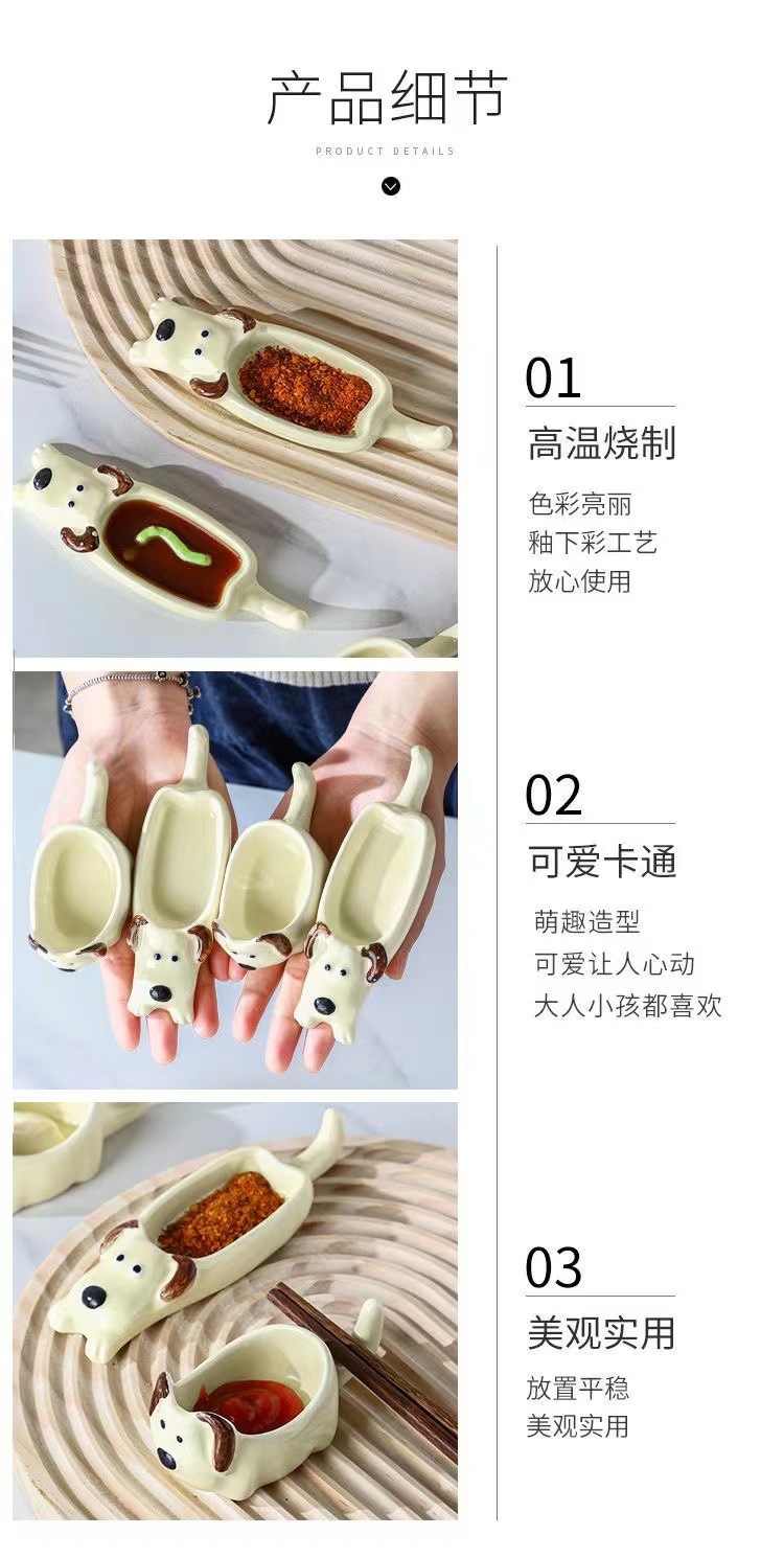 귀여운 총 만화 세라믹 딥 접시 창조적 인 고양이와 개 모양 뜨거운 냄비 손 반죽 단일 손잡이 맛 요리 가정용 조미료 작은 접시스토어 가기