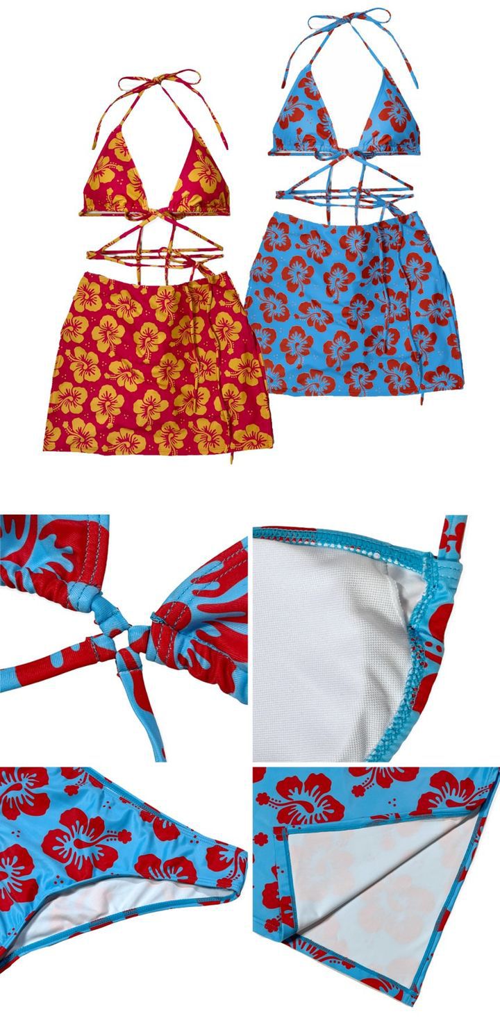 새로운 인쇄 된 섹시한 3 피스 세트 유럽과 미국의 스트랩 백리스 휴가 수영복 여성 비키니스토어 가기