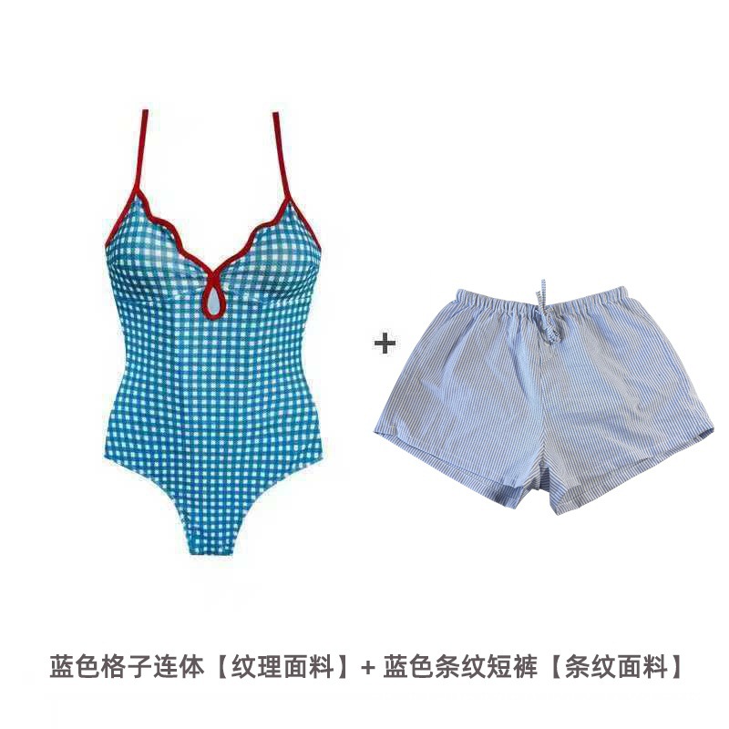 2025 새로운 격자 무늬 슬링 입 슬림 해변 온천 스포츠 원피스 태양 보호 여성 수영복 수영복스토어 가기