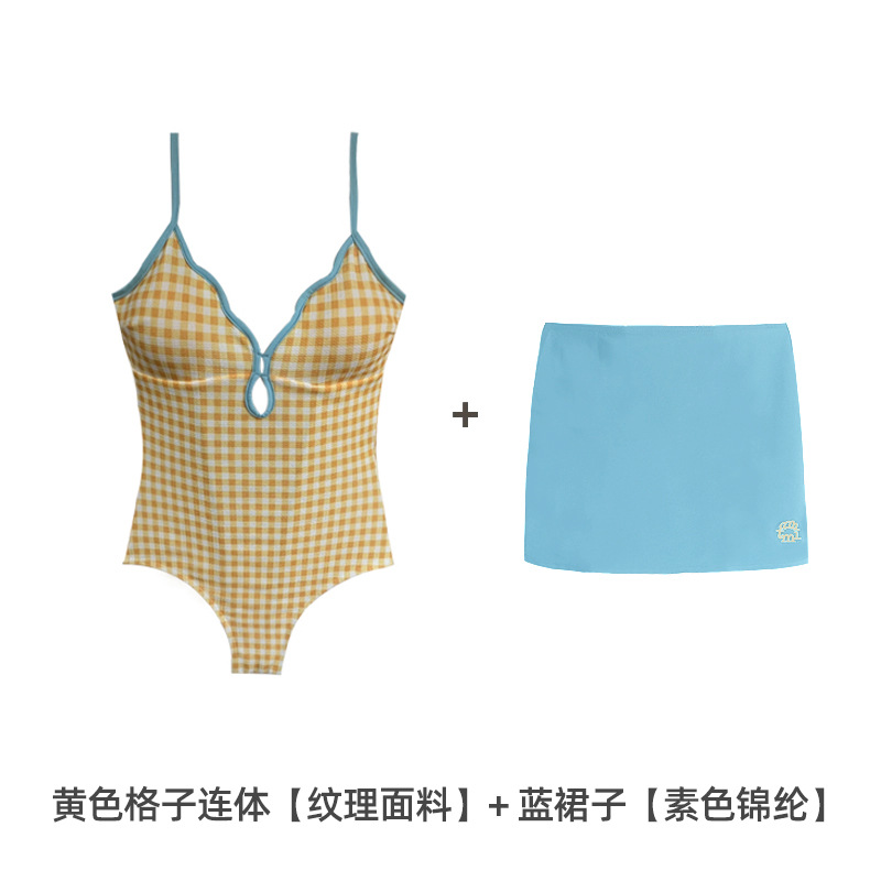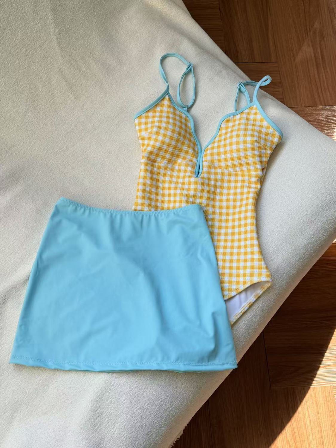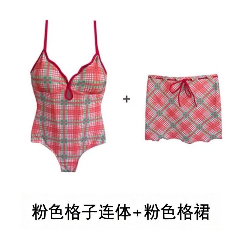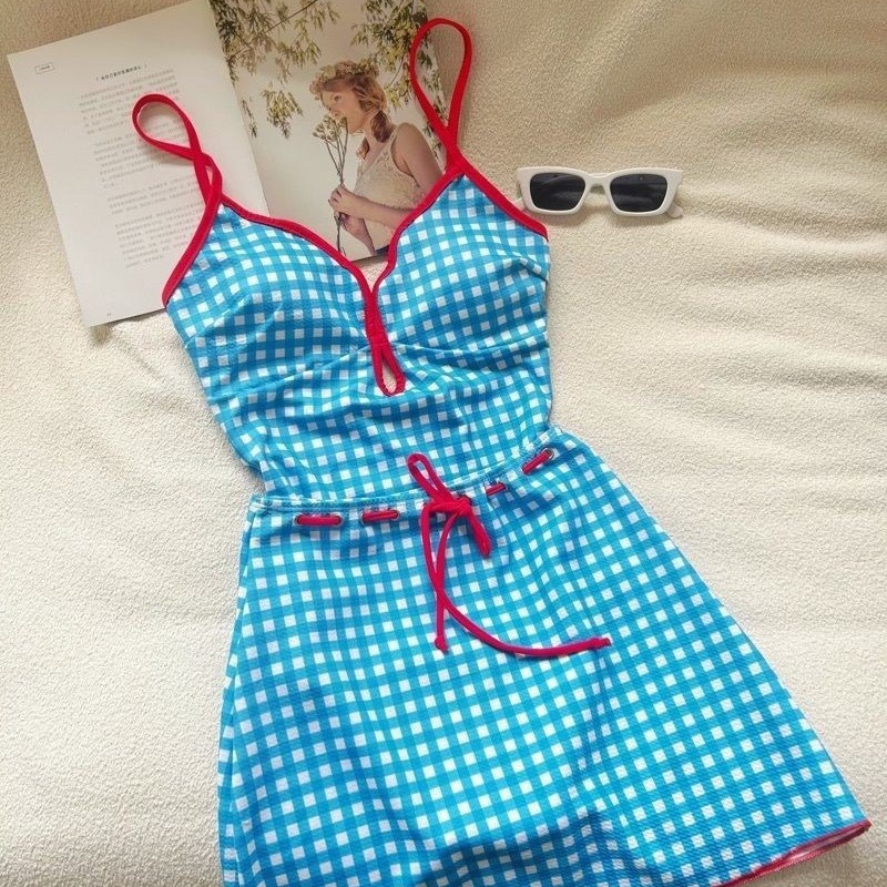 2025 새로운 격자 무늬 슬링 입 슬림 해변 온천 스포츠 원피스 태양 보호 여성 수영복 수영복